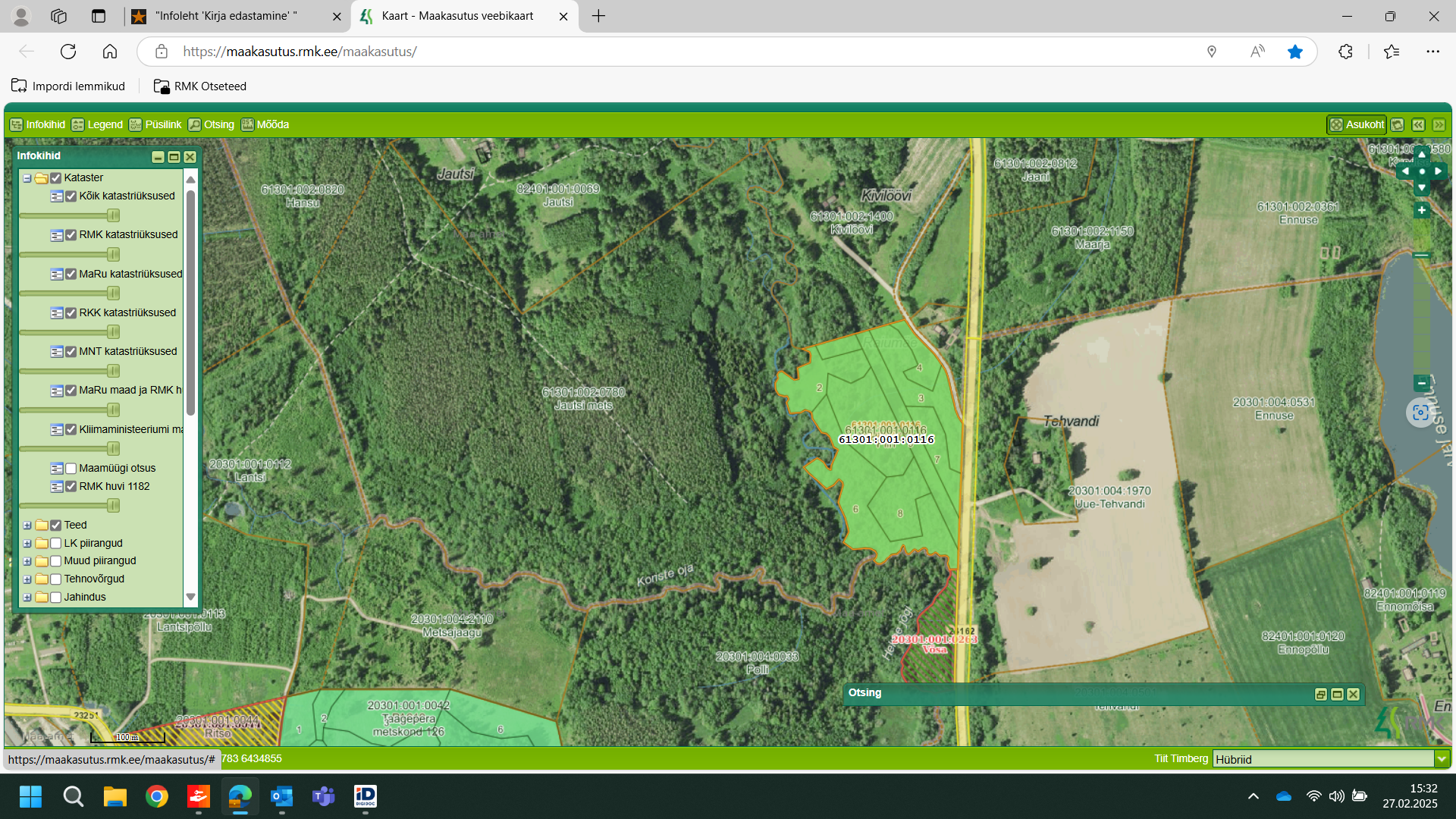 Leht 2/2 X-GIS2. Maa- ja Ruumiamet. Kõik õigused kaitstud.