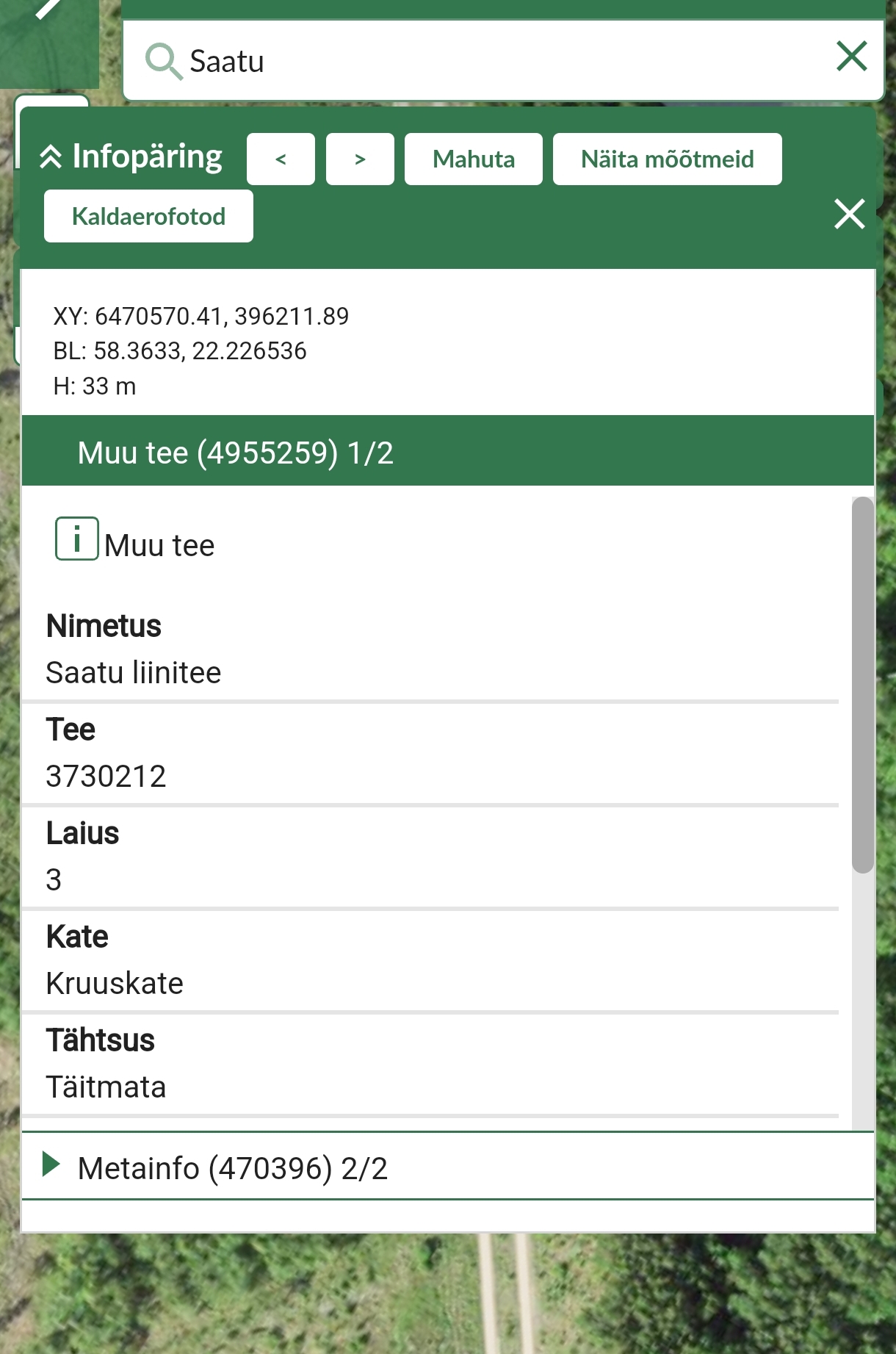 Asukoht Saaremaa, Karujärve, Saatu liiinialune.