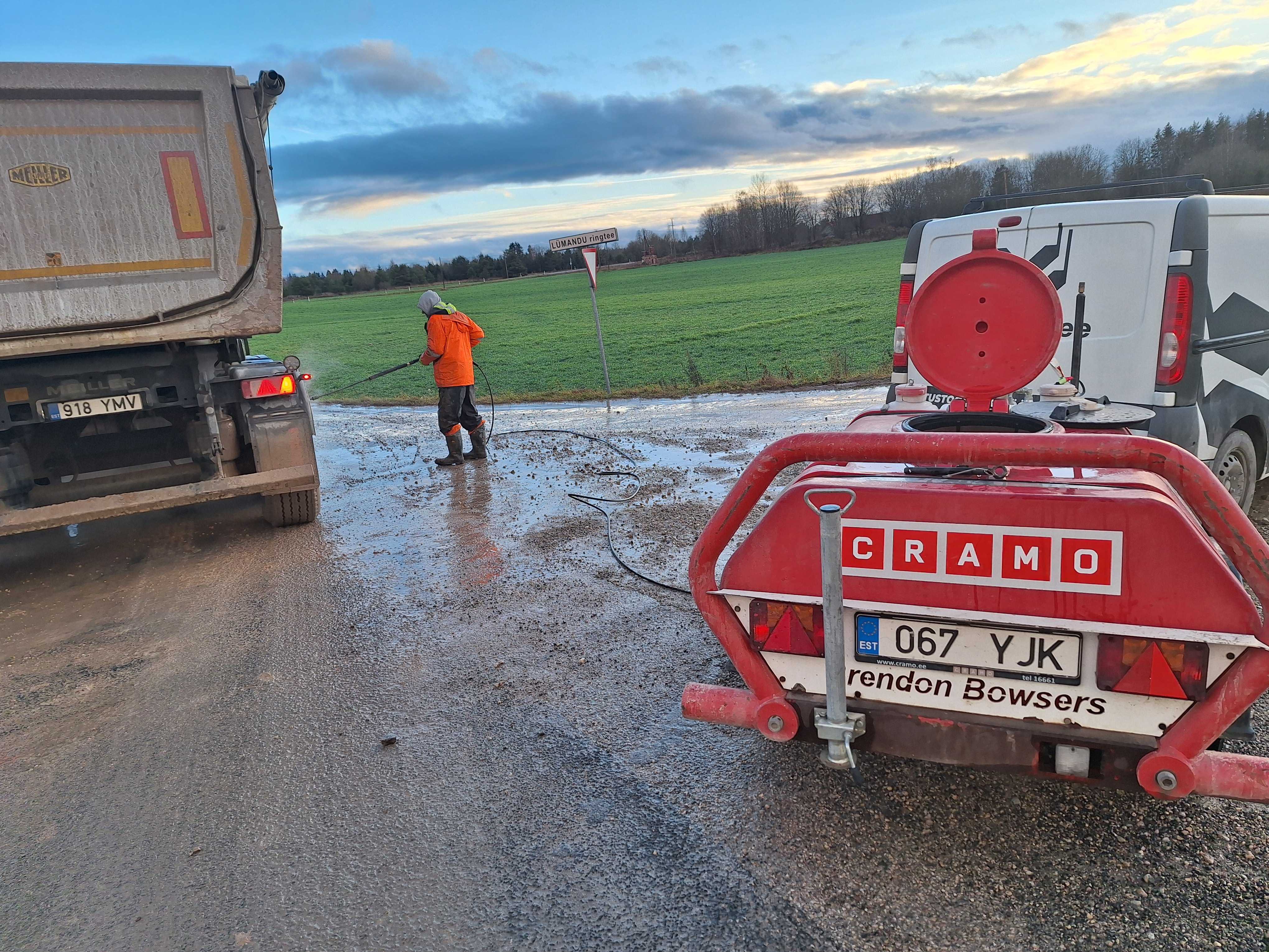 Tere Nagu telefonis rääkisime, siis oleks meil soov tekitada Lümandu tee äärde veokite pesemise ala, sest karjääriveoga Rail Baltica põhitrassi jaoks on ümberkaudsed teed väga mustaks läinud ja muud lahendust ei näe probleemile kui autode pesemine. Kuna Ääsmäe-Hageri tee poolt tulles on Lümandu tee värskelt ära pinnatud, siis mõistlik oleks pesemise ala teha sinna kus pinnatud tee läheb üle kruusateeks (katastriüksus 31701:001:1353 ). https://maps.app.goo.gl/fnSbGQAgEPEfmk9U6 Plaan oleks teha tee äärde killustikust plats kuhu veoautod saavad seisma jääda ja survepesuriga pestakse rattakoopad ja raamid puhtaks, et see mustus ei kanduks edasi teede peale. Platsi suurus võiks olla 3x20 meetrit, et veoauto ja pesuriauto ära mahuksid sinna ilusti. Kooriksime kasvupinnase ära ja teeksime killustikust platsi ja kui veod on lõppenud, siis taastaksime eelneva olukorra. Peseksime lihtsalt puhta veega (mingeid pesuaineid või kemikaale kindlasti ei kasuta). Kui peaks tekkime suured pori kogused, siis likvideerime need sellest asukohast. Keskkonnaamet ütles, et sellist pesemise lahendust võib kasutada kui saame maaomanikega kokkuleppele ja plats ei asu veekogu lähedal. Ajaliselt oleks soov platsi kasutada umbes aasta aega (nii kaua kuni karjäärist materjal kõik välja on veetud). Miinuskraadidega ilmselgelt pole vaja pesta ja siis platsi ei kasutaks aga kui on vihmased ilmad, siis on see meile hädavajalik. Panin manusesse mõned skeemid kuidas see plats välja võiks näha ja üks pilt on ka pesurist mida kavatseksime kasutama hakata. Kas selline lahendus oleks sobilik teie jaoks? Lugupidamisega