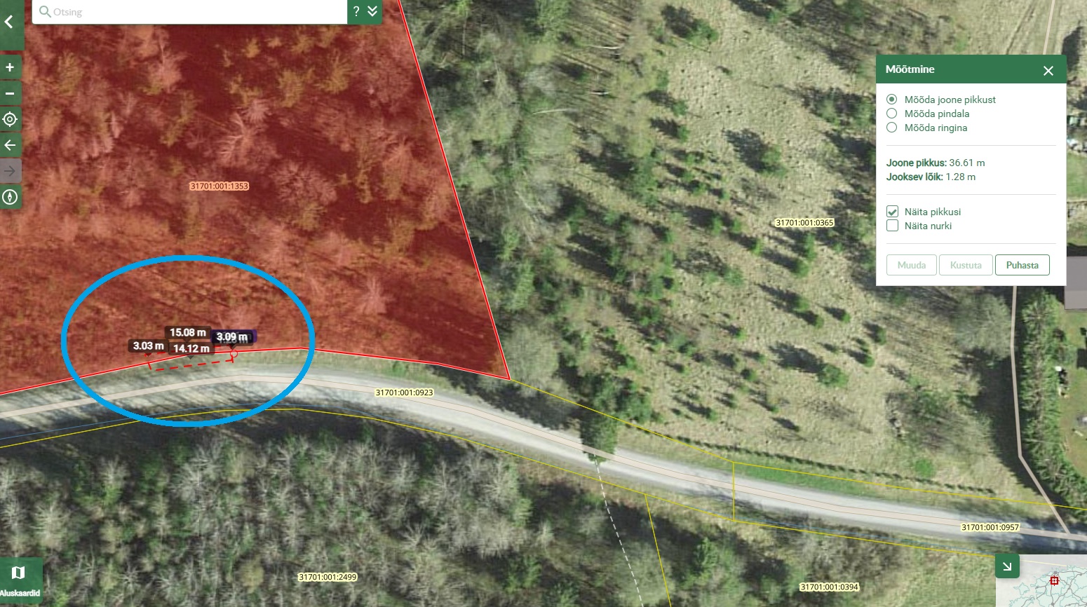 äärde selliselt, et see võib ulatuda luni 1,5 meetri ulatuses RMK kinnisasjale Vardi metskond 244