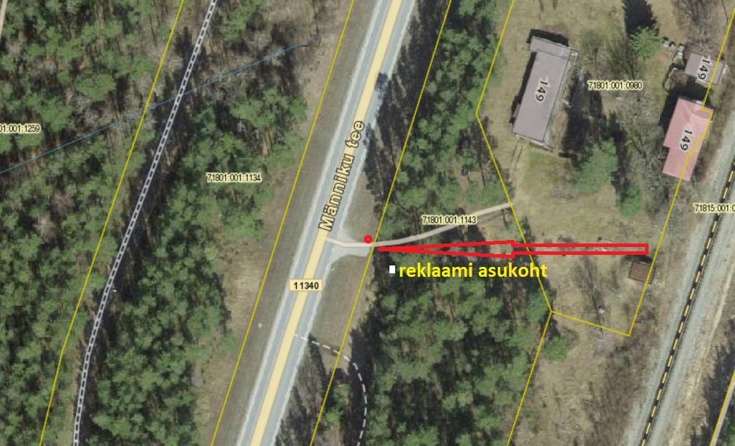 Harju Tarbijate Ühistu ( Saku 6, Tallinn ) soovib RMK-lt kooskõlastust ( kui kõrvalasuva kinnistu 71801:001:1143 valdaja) liiklusvälise teabevahendi ( reklaami) paigalduseks Männiku tee ( Tallinn -Saku ) 7,7 km, L-EST asukoht: X: 6576196,6 ; Y: 539232,4. Manuses on Transpordiameti kooskõlastus, mille on lisatud ka reklaami kujundus, mõõtmed ja asukoht.