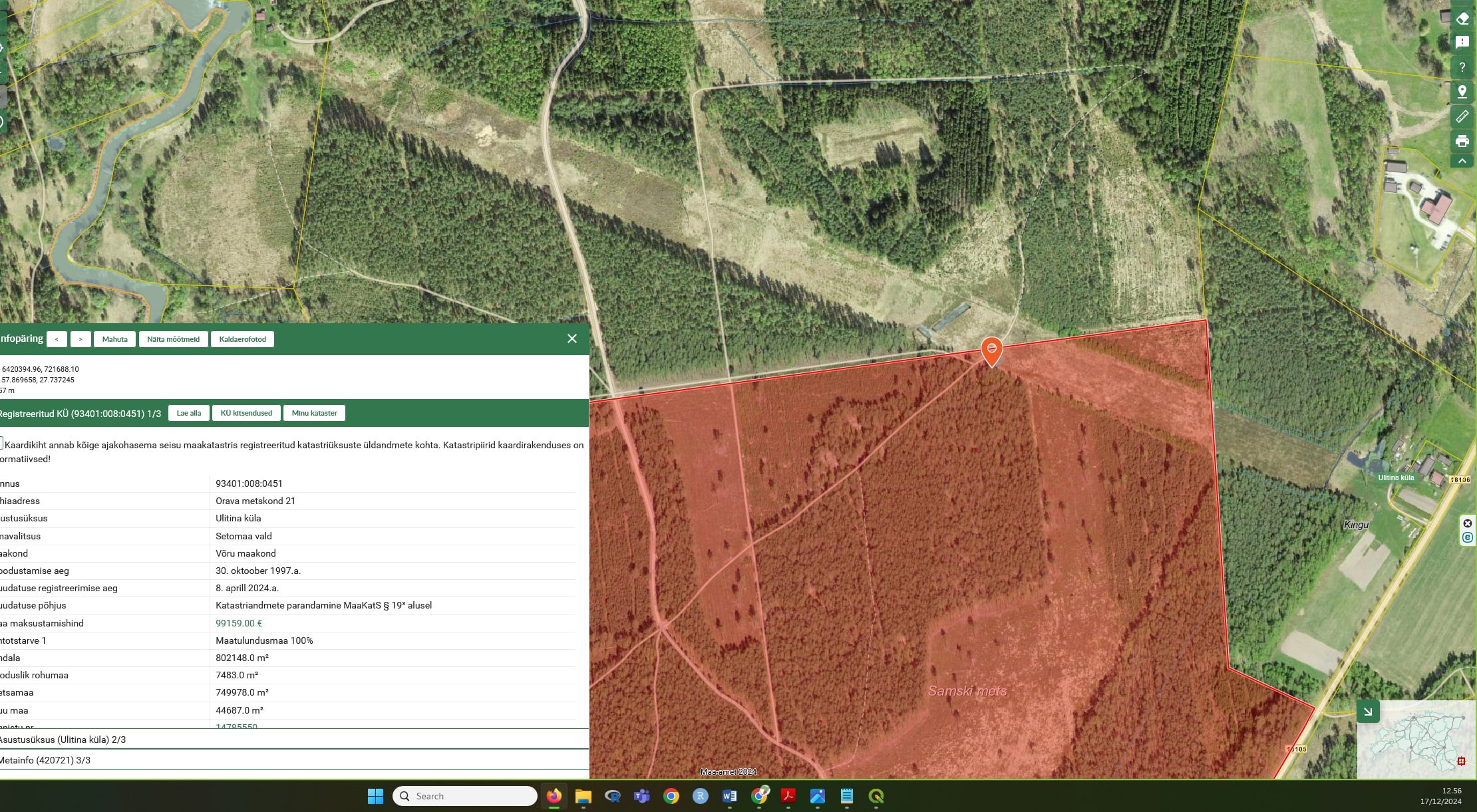 Saatja: Maris Hindrikson <[email protected]> Saadetud: neljapäev, 7. november 2024 13:59 Adressaat: Tiit Timberg <[email protected]> Teema: Vs: Taotlus kahe rajakaamera paigaldamiseks / RMK selgitus Tere! Teavitame ka, et algselt eramaale paigaldama pidanud rajakaamera paigaldasime kinnitustule 6117050 (Orava metskond 23), mis on samuti Riigimaa (asukoht manuses). Loodan, et sellega ei ole probleeme. Kohapeal selgus, et selline asukoht ei võimaldanud sobivat kaamera võttenurka ja nii oleks kaamerast loomade aktiivsusmustrite uurimiseks vähe kasu olnud. Lugupidamisega, Maris Hindrikson Tartu Ülikooli terioloogia teadur [email protected] 5542532