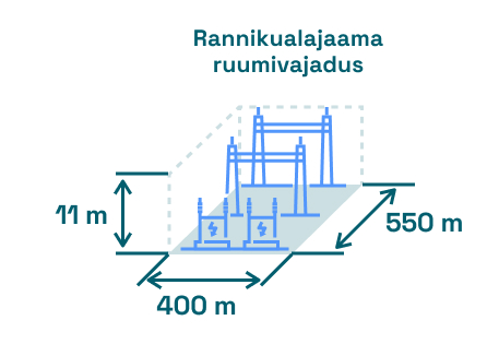alajaam, mille maa-ala vajadus on maksimaalselt 550mx400m (lisatud alajaama põhimõttelise lahenduse skeem).