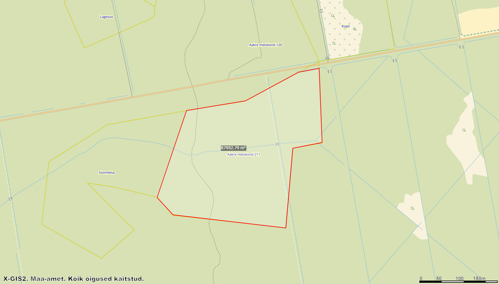 2. Aakre metskond 211 kinnistu Tartu maakonnas Elva vallas Rebaste külas (registriosa nr 13420250, katastritunnus 60801:001:0024, sihtotstarve maatulundusmaa 100%, riigi kinnisvararegistri kood KV28480). Taotleme maaüksuse jagamist lisas 2 toodud plaanil näidatud ulatuses ning jagamise tulemusena moodustatava uue kinnistu üleandmist.