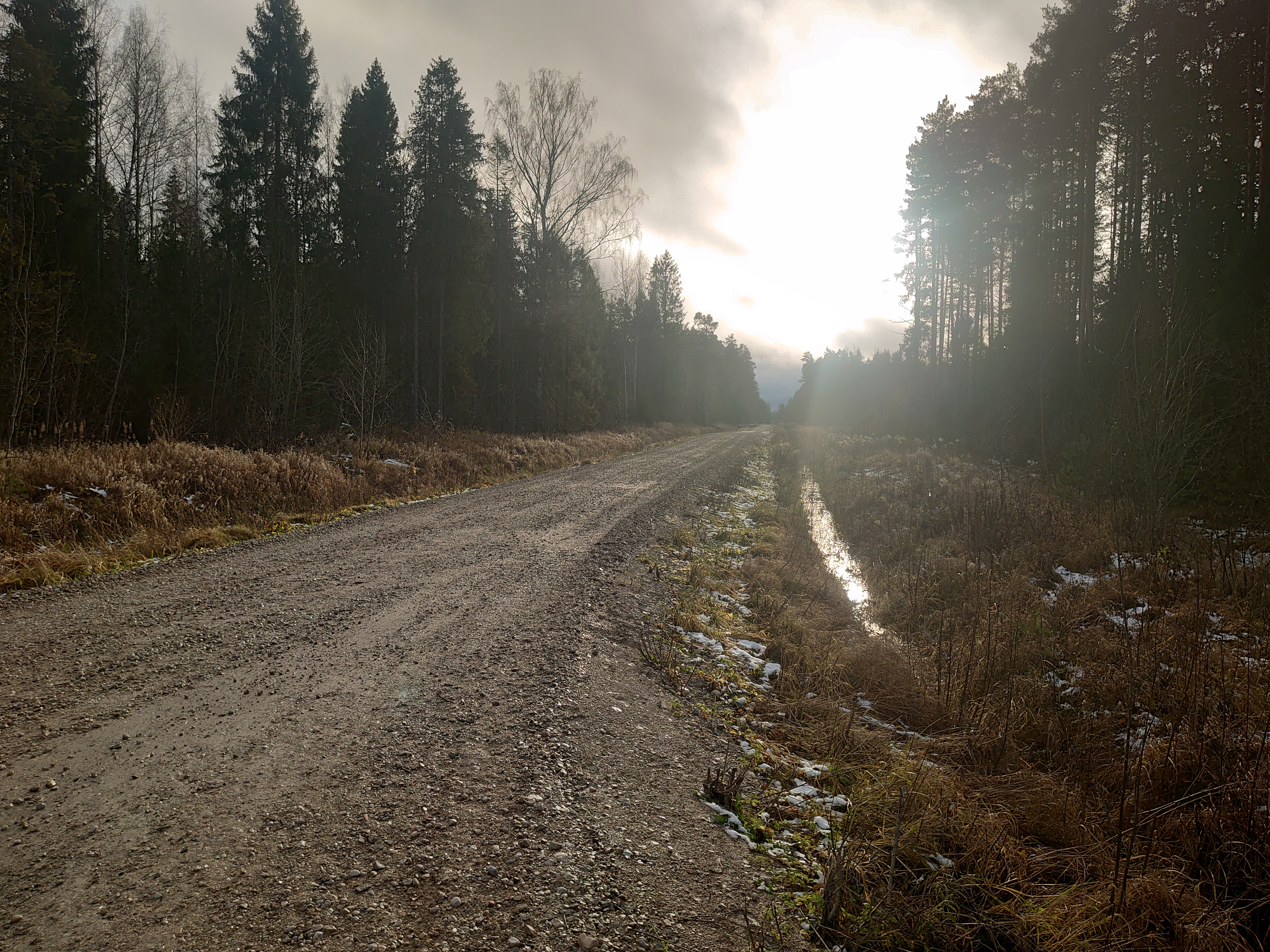 Täna oli suur osa purukruusast tee äärde kuni kraavinõlvadeni lükatud ja teed oli täidetud jämedama fraktsooniga, mis oli tee sisse sõidetud.