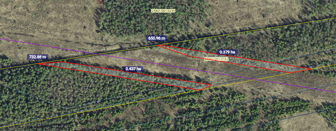 23401:001:0182 - Türi metskond 89. Kinnistul vaja raadata ca. 0,81 hektarit. 23401:001:0039 - Türi metskond 243. Kinnistul vaja raadata ca. 0,29 hektarit.