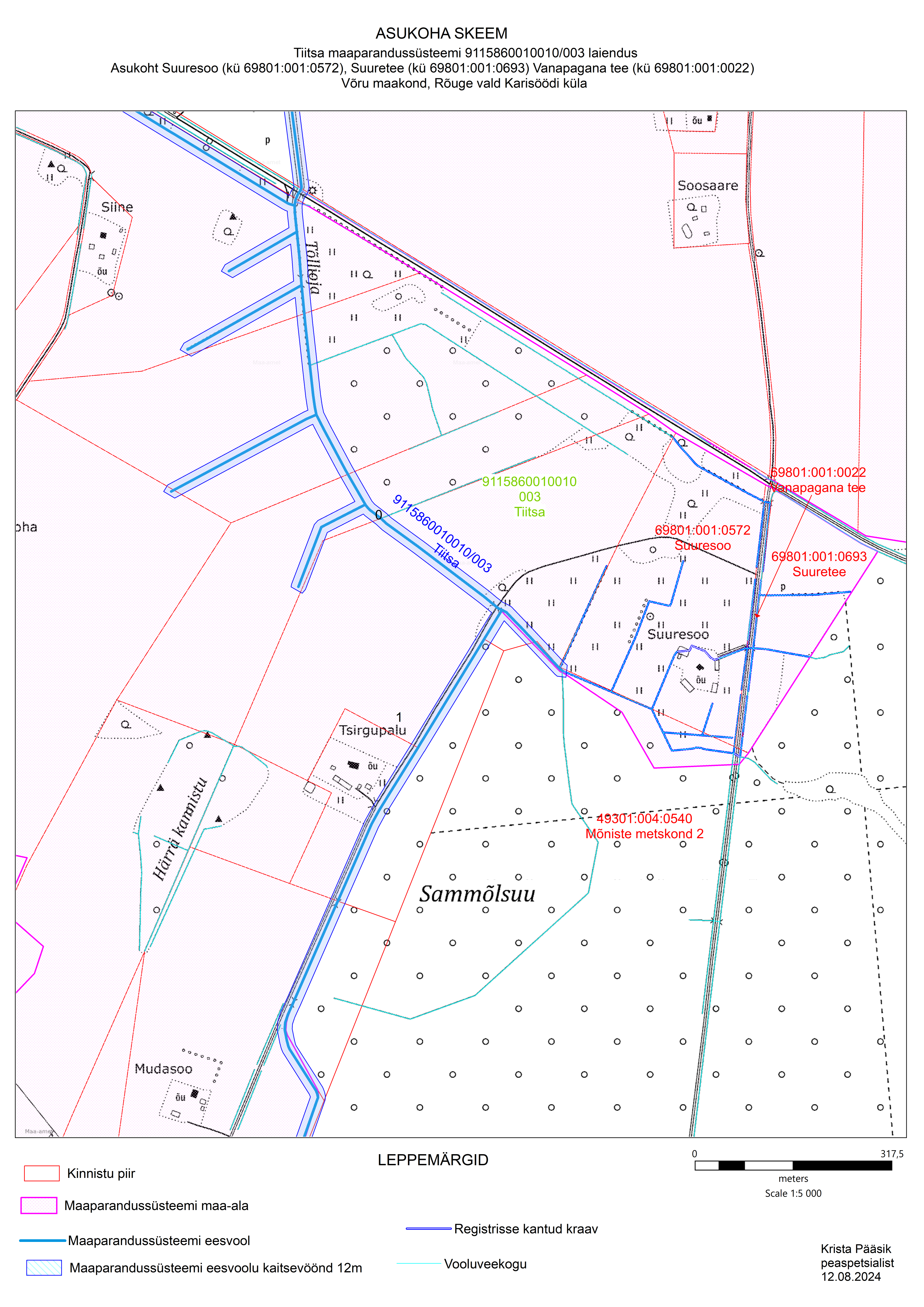 Reg nr: 6.1-5/28951-2 Reg kp: 12.08.2024 Lühisisu: PTA on teinud 12.08.2024 maaparandussüsteemide registrisse kande Võru maakonnas Rõuge vallas Karisöödi külas asuva Tiitsa maaparandussüsteemi (MS kood 9115860010010/003) andmete ja piiri korrigeerimiseks. PTA Viljandi keskus edastab Teile maaparandussüsteemi asendiplaani Dokumendi liik: Maaparandus Allkirjastaja, vastutaja: Krista Pääsik