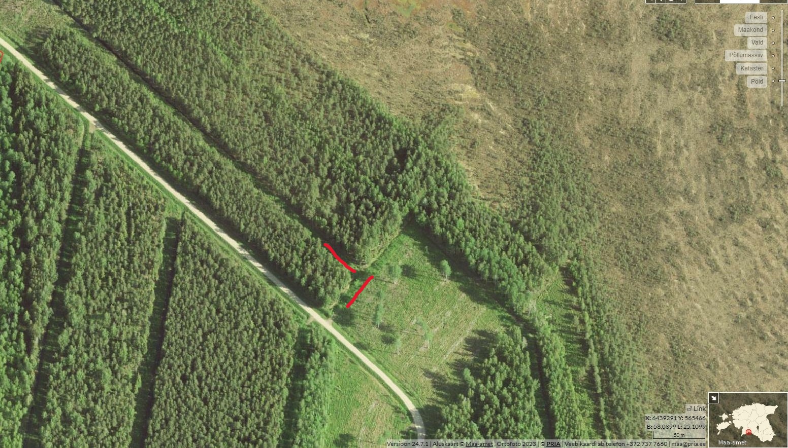 Sama koht, mis eelmises kirjas. Käisin kohapeal vaatamas. Saaksin tarud asetada kas kõrval olevale vahesihile või ka tee ja langi vahele jäävale alale. Tarude jaoks vajan suhteliselt vähe ruumi. Umbes 10x2m peaks olema piisav. Lisan kirjale ka pildi, kus on punase joonega kohad peale tehtud, kuhu saaksin tarud panna ja kus ma oma tegevusega ei lõhuks langile istutatud noori taimi. Kui vaheteed, mida mööda punaste joonteni pääseb, ei ole teil vaja lähema kuu aja jooksul kasutada, siis mina saaksin tarud ka otse vaheteele jätta.
