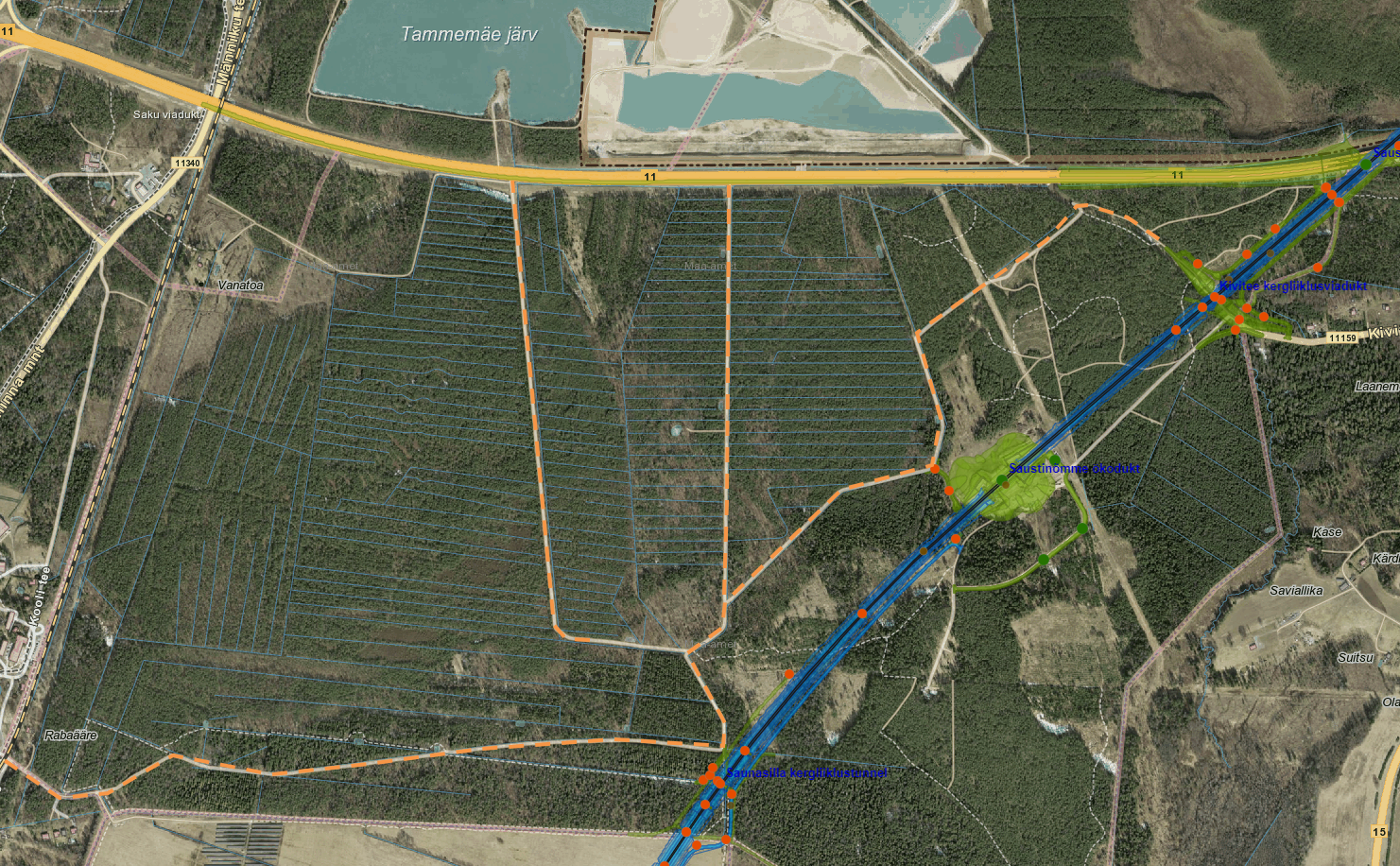 Tere, Meil on Saustinõmme piirkonnas Kivi tee kergliiklusviadukti juures üks rdt tarbeks rajatav hooldustee ja õkodukti juures juurdepääsutee millele on vajalik tagada juurdepääs sõidukitega metsas olevate teede kaudu. Paluksime Teie nõusolekut plaanil näidatud (oranž punktiirjoon ) teede kasutamiseks.