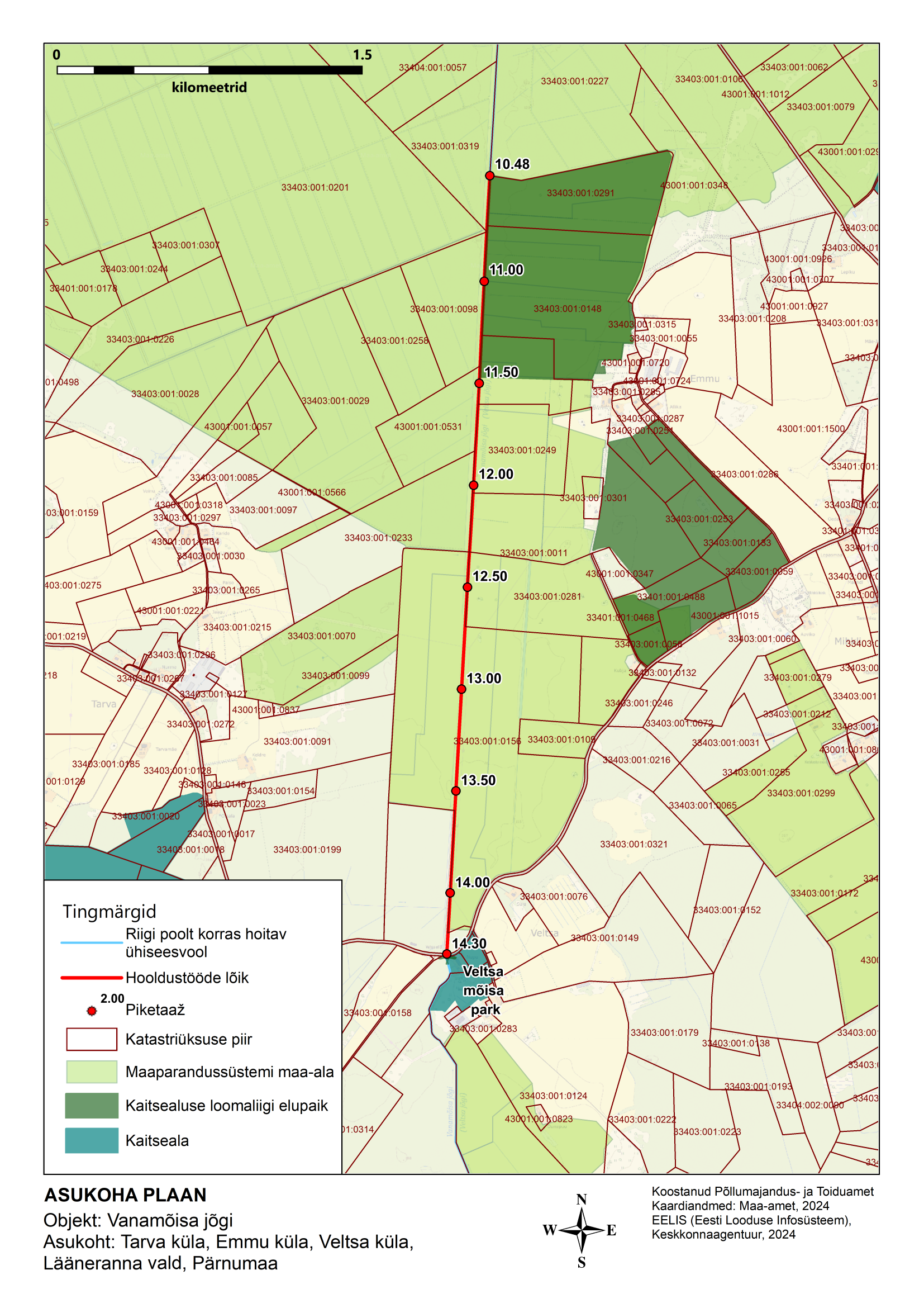 Vanamõisa jõel, pikettidel 10,48 - 14,30. Kirjale on lisatud asukohaplaan (Asukoha plaan –