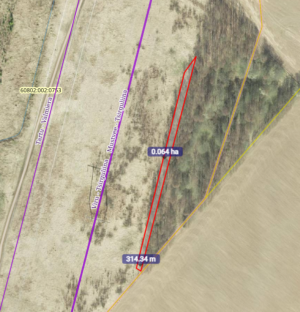 60802:002:0753, AA142 eraldis 55 serv. Laienduse maht ca 0,06 ha.