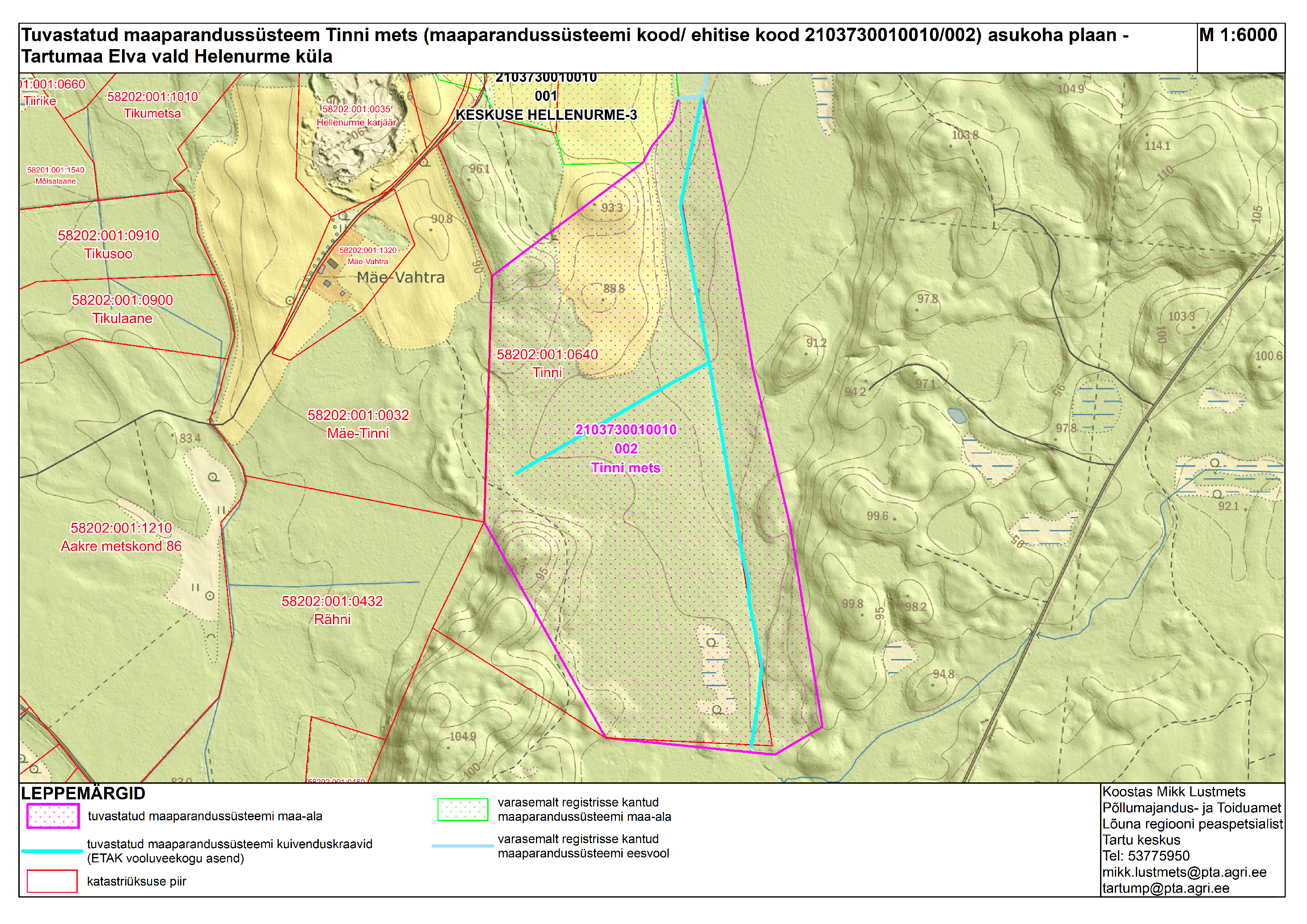 Mortec OÜ (registrikood 10566139) esitas 15.01.2024 taotluse olemasoleva maaparandussüsteemi arvele võtmiseks Tartumaal Elva vallas Hellenurme külas Tinni (katastritunnus 58202:001:0640) katastriüksusel. Oleme tutvunud kaardimaterjaliga ETAK-s ja oleme tuvastanud maaparandussüsteemi rajatised teie kinnistul. Anname teada, et Põllumajandus- ja Toiduameti (PTA) ametnik teostab kuupäevadel vahemikul 08.04-19.04.2024 maaparandusseaduse (MaaParS) §99 lõike 10 alusel kinnistutel ülevaatuse MaaParS §99 lõike 2 ja 5 nimetatud hinnangu andmiseks maaparandussüsteemi (MPS) seisukorrale. Juhul kui tuvastatud MPS vastab MaaParS §99 lõikes 2 nimetatud seisukorrale, kantakse MPS maaparandussüsteemide registrisse ja loetakse kasutusluba antuks.
