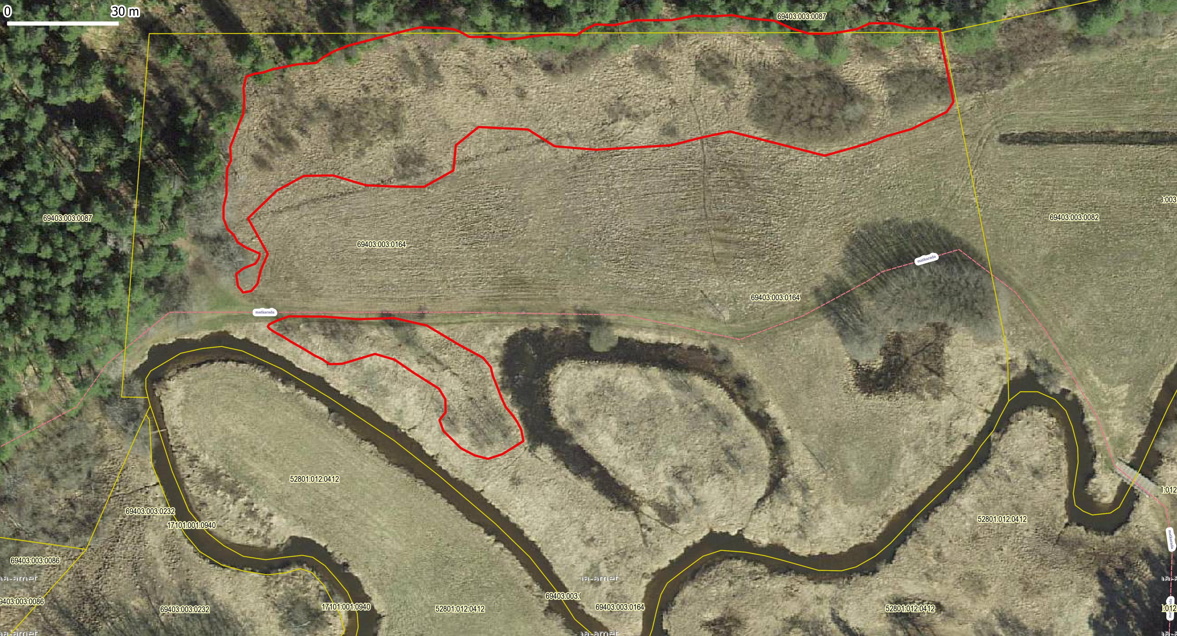 kasvama jäävad oranži rõngaga märgitud kaks leppa ala kirdenurgas.