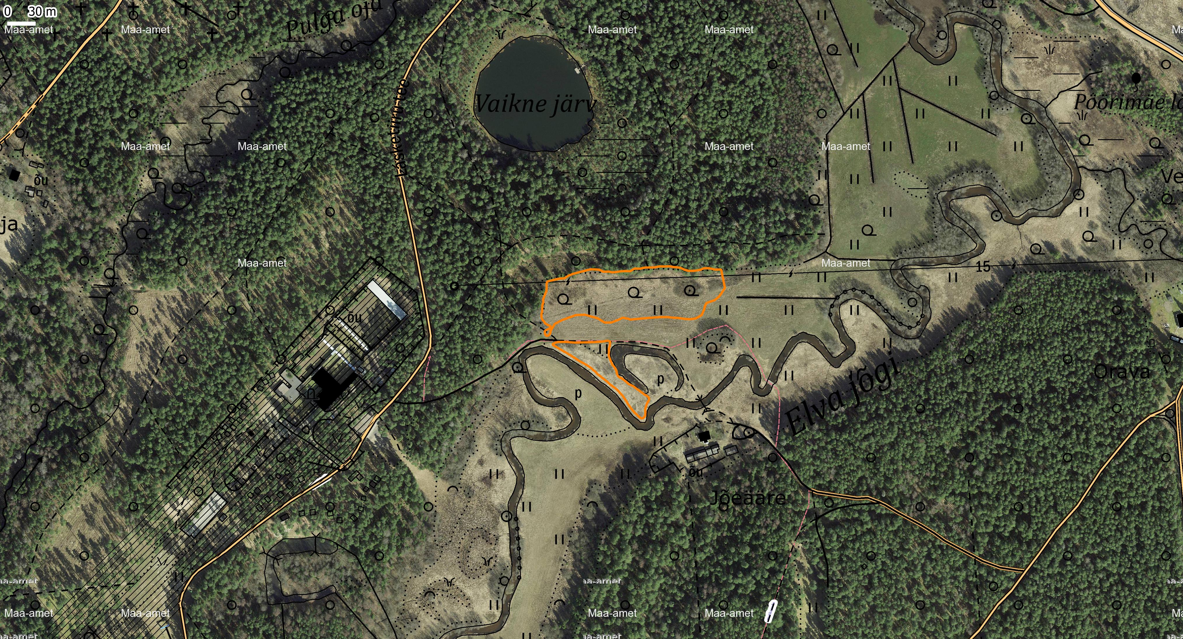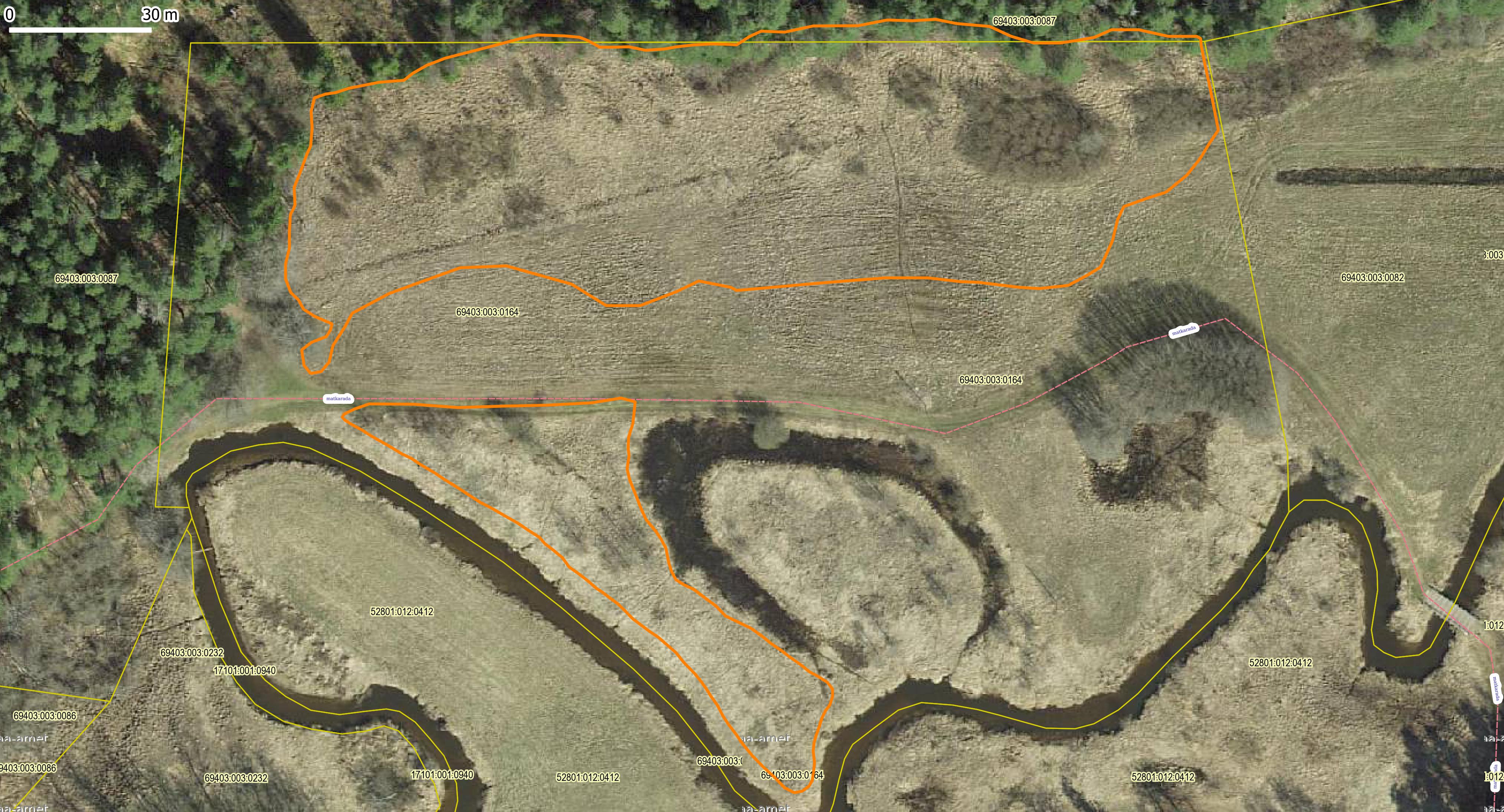 Taastamisala piirid on looduses tähistatud oranži märkevärviga.