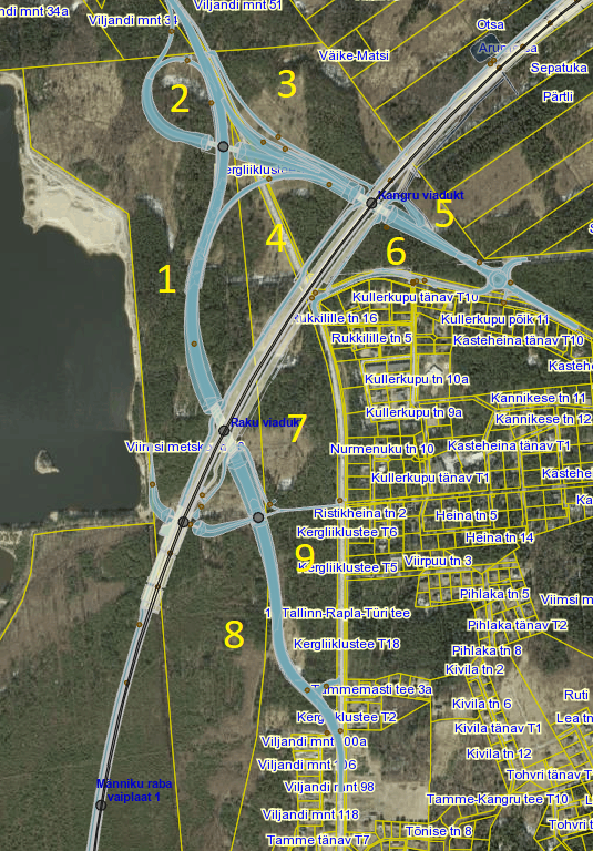 Kangru liiklussõlm rajatakse suures osas RMK hallatavale maale, millede katastritunnused on