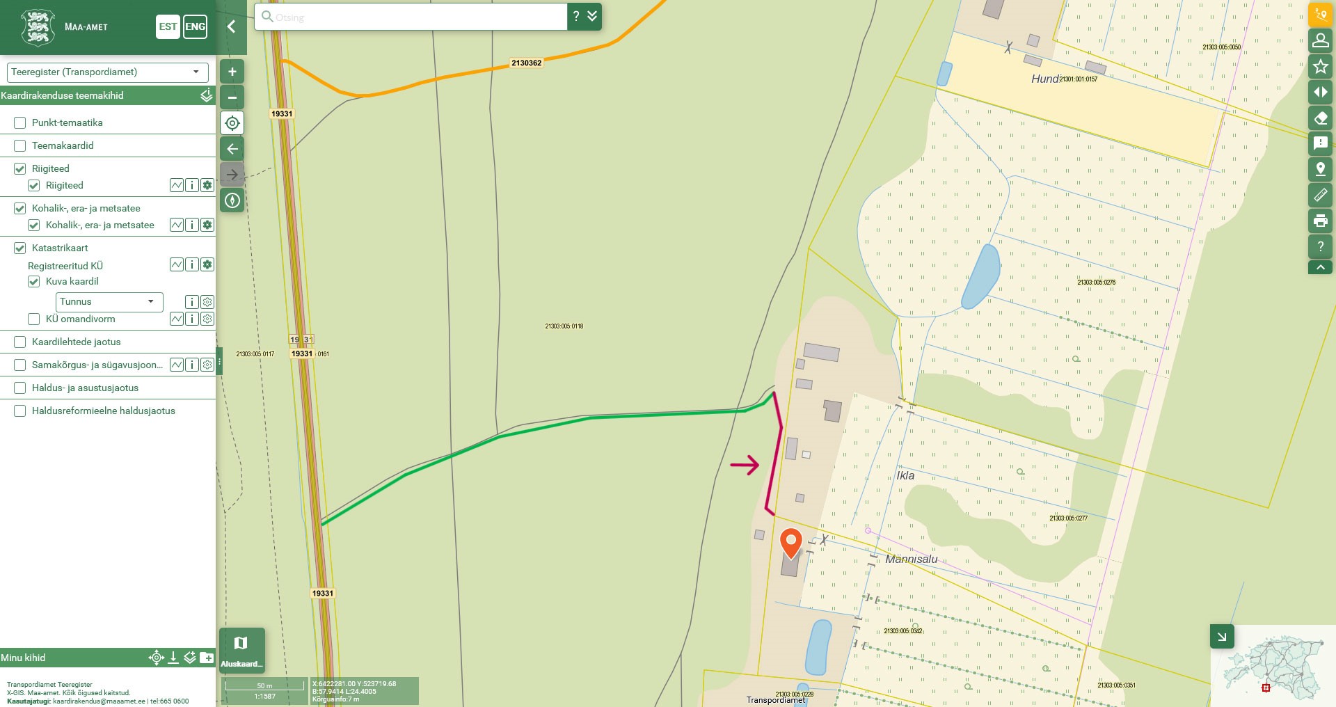 Vaadates aga Maa-ameti Teeregistri kaarti, siis sinna ei ole märgitud ajalooliselt väljakujunenud teejuppi, mis viib Männisalu kinnistule ja on ainus juurdepääsutee. Ilma selle tee märgistuseta plaanil ei saa vald aga teha otsust anda Männisalu juurde viiv metsatee avalikuks teeks.