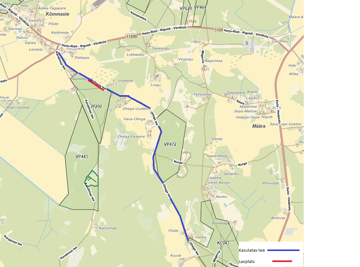 kuuluvat Ohega (5620067) teed. Metsamaterjali veoks kasutatavad teed on näha Lisa-s 1 oleval