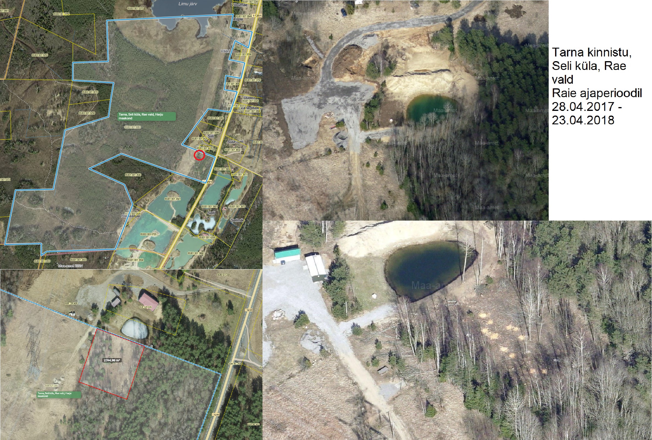 Esialgsete andmete kontrollimisel oleme avastanud Maa-ameti Fotoladu kaardirakenduse fotodelt, et Rae vallas Seli külas asuval Tarna kinnistul on ajavahemikus 28.04.2017 – 23.04.2018 teostatud ~2510 m2 alal (mõõdistus puudub, andmed Maa-ameti kaardirakendusest). Rae vallas Seli külas asuval Tarna kinnistu (RKVRi objekti kood - KV9057) omandivorm on Riigiomand, riigivara valitseja on Kliimaministeerium ja riigivara volitatud asutus on Riigimetsa Majandamise Keskus. Info pärineb katastri riigivara ruumiandmete keskkonnast „KATRI“.