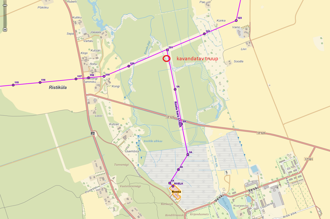 Tere! Palume kooskõlastada truubi ehitus ojale. Truup on vajalik tehnika juurdepääsuks 110 kV õhuliini L192 masle nr 121. Katastritunnus: 90002:005:0930