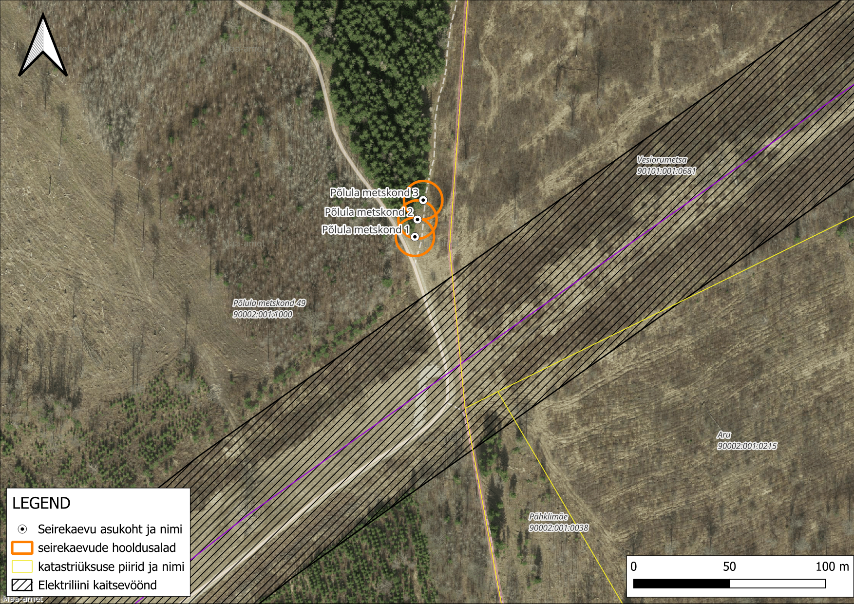 Selleks plaanitakse 2024. aasta kevadel rajada 3 uut seire puurkaevu, mis asuks Eesti Vabariigile kuuluval ja Riigimetsa Majandamise Keskuse poolt hallataval Põlula metskond 49 kinnistule (90002:001:1000) (Joonis 1 kirjale lisatud manuses ja nõusoleku vormil). Uuringu käigus paigaldatakse kaevu veetaseme mõõtmise automaatandur ja võetakse ühe aasta jooksul veeproove maksimaalse sagedusega kord kuus. Veeproovist määratakse põhjavee kvaliteedi põhinäitajate ja vees lahustunud orgaanilise aine sisaldused.