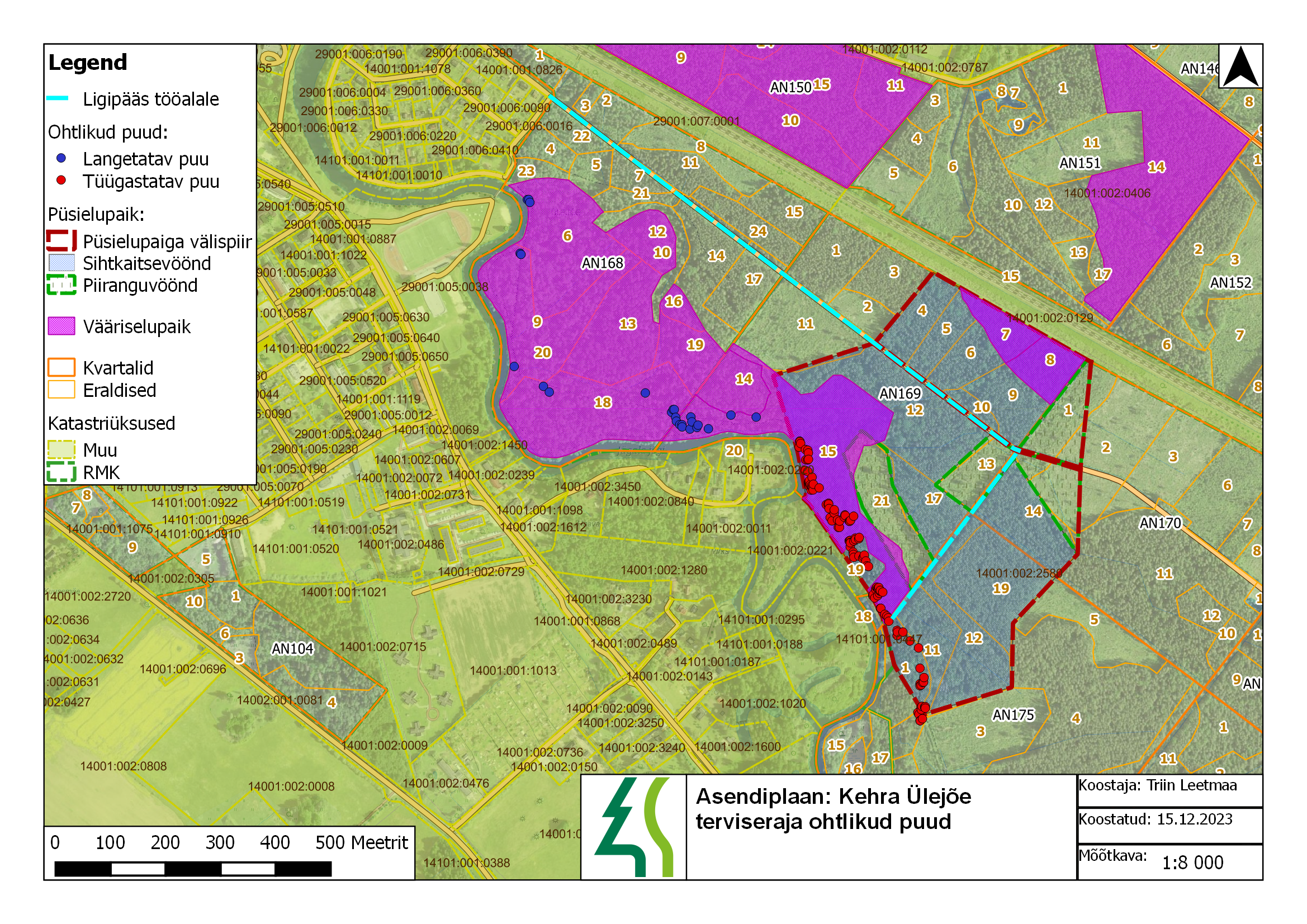 plaani, kus on näidatud likvideeritavate ohtlike puude asukohad ja vajalik liikumistee tehnikale.