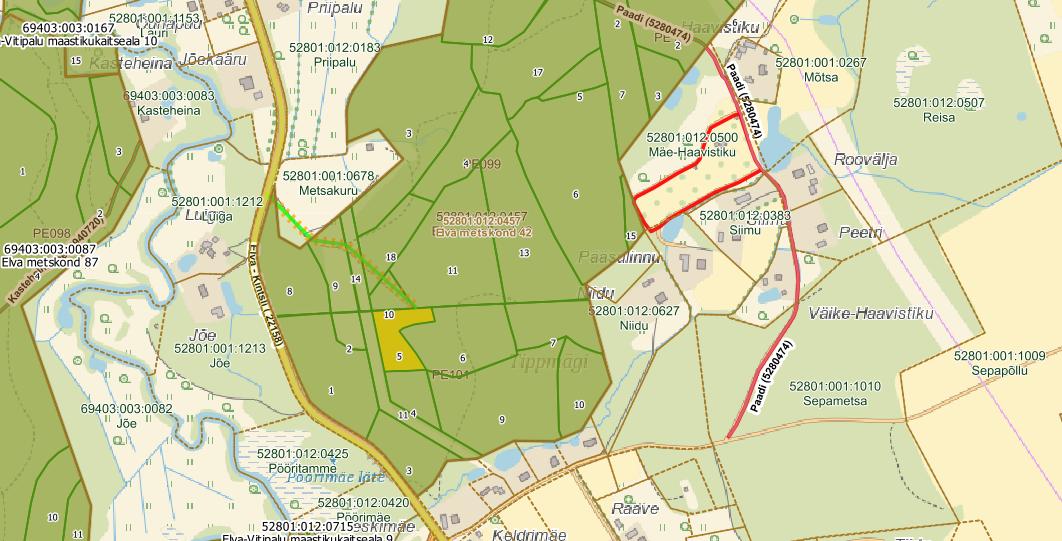 alal üraskikahjustuse tagajärjel surnud metsa raiet, vt kaarti. Raie on kavandatud metsaeraldisele