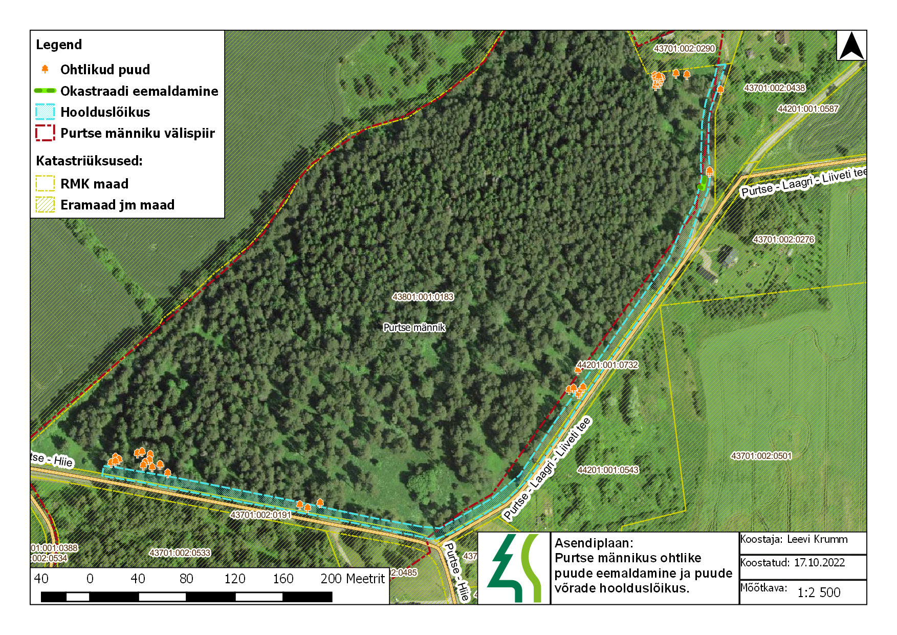 2022. aastal teavitati Riigimetsa Majandamise Keskust (edaspidi RMK) ohtlikest puudest Purtse