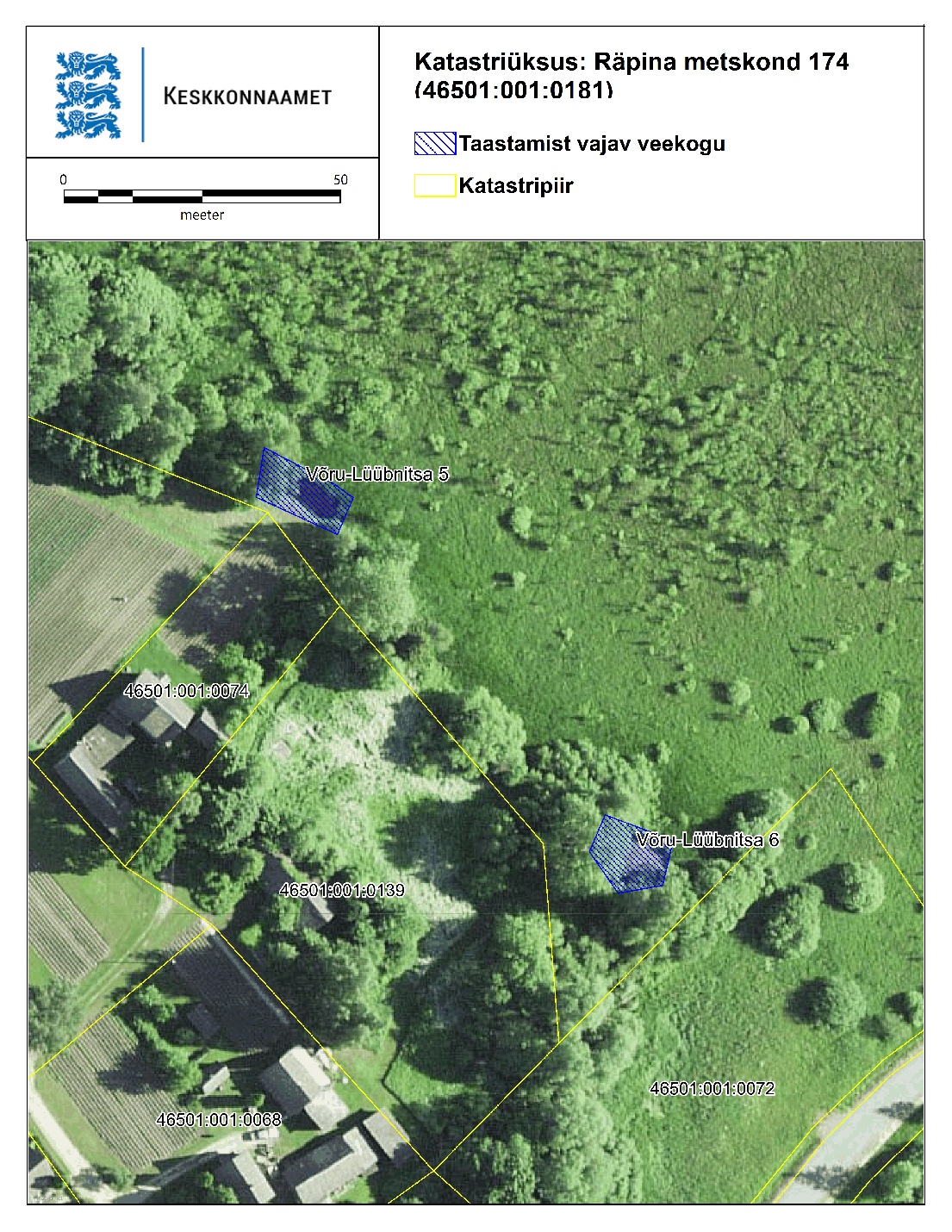 46501:001:0181 (Räpina metskond 174) veekogud Võru-Lüübnitsa 2, 3, 4, 5, 6.
