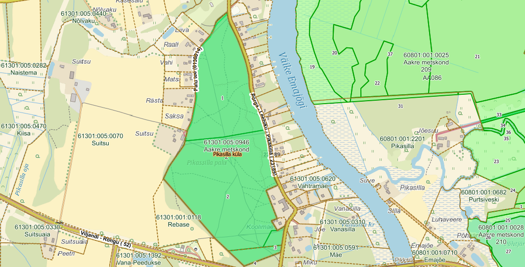 metskond 2 tunnusega 61301:005:0946 ja Aakre metskond 330 tunnusega 82401:001:0011