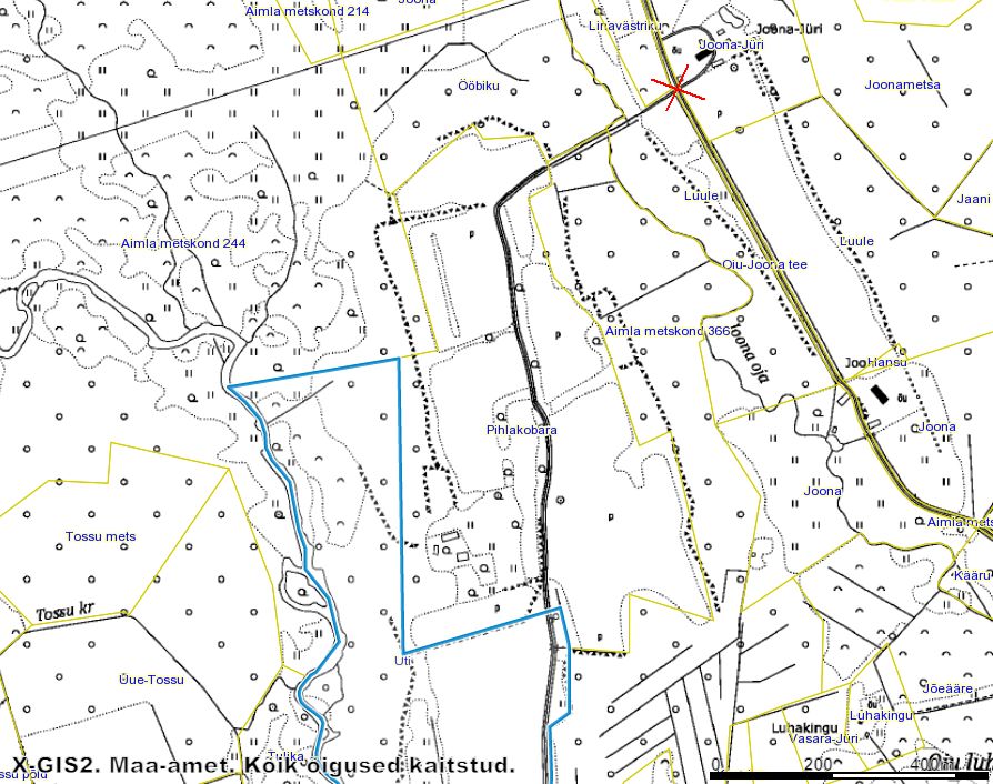 Viljandi vallas, Oiu külas toimus Uti katastriüksuse mõõdistus seoses katastriüksuse jagamisega. Vastavalt katastriüksuse moodustamise korrale kutsun Viljandimaa metskonda, kui piirnevate katastriüksuste (Aimla metskond 244 ja Aimla metskond 366) omanikku piiride kättenäitamisele 27.10.2023.a. kell 10.00 Piiride kättenäitamise kokkusaamise koht: Viljandi vald, Oiu küla, Uti talu juurde viiva tee algus (ristiga märgitud koht lisa skeemil). Piiripunktides 5,21,20,17,16,15 ja 14 olid piirimärgid olemas. Piiripunktides 5,21,17,16,15,14 olid metalltorud ja piiripunktis 20 oli piirikivi. Piiripunktis 18 oli kiviaia käänakus, joonepikkuse järgi piiripunktist 17 sobivas asukohas piirkivi, kuhu nüüd on märgitud tsenter. Piiripunktis 19 on piirimärk taastatud kiviaia ja joonepikkuse järgi piiripunktist 20. Piiripunktis 4 on piirmärk taastatud katastriandmete ja joone pikkuse järgi piiripunktist 5. Uti katastriüksuse (vormistatud plaanimaterjali aluse.) piiriprotokolli skeemi järgi kulgeb Aimla metskond 244 ja Uti katastriüksuste ühine piir mööda elektriliini. Liini looduses enam ei ole, aga varasematel põhikaartidel olev elektriliin sobib hetkel katastris registreeritud Uti ja Aimla metskond 244 ühise piiriga. Piiripunkt 3 on looduses tähistamata veekogu telje punkt Piir kulgeb piiripunktide 3-4-5 ja 21-20-19-18-17-16-15-14 vahel sirgjooneliselt. Piiride kättenäitamise osalemise järel saab soovi korral saab piiriprotokolli allkirjastada 7 päeva jooksul alates selle allkirjastamiseks esitamisest digitaalselt või allkirjastatuna paberkandjal. Etteantud aja jooksul märkusi esitamata piirprotokolli allkirjastamata jätmise korral loetakse piir kooskõlastatuks.