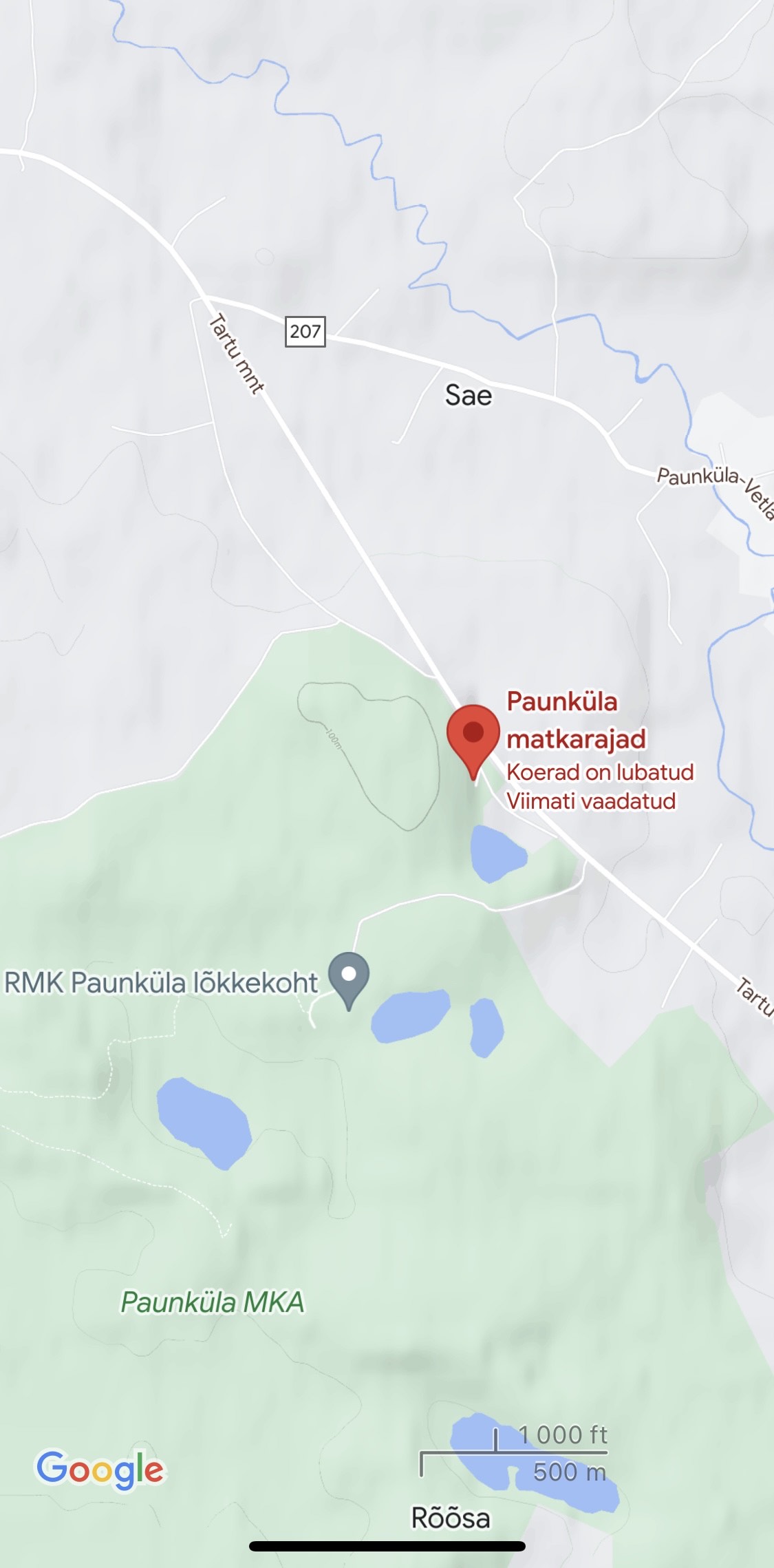 Meil nimelt natuke raske täpselt aru saada, kas mõtlete Paunküla mägede matkaradade alguspunti parklat Rõõsal või Paunküla veehoidla äärset Hiieveski telkimisala parklat, kus kulgeb RMK matkatee trass.