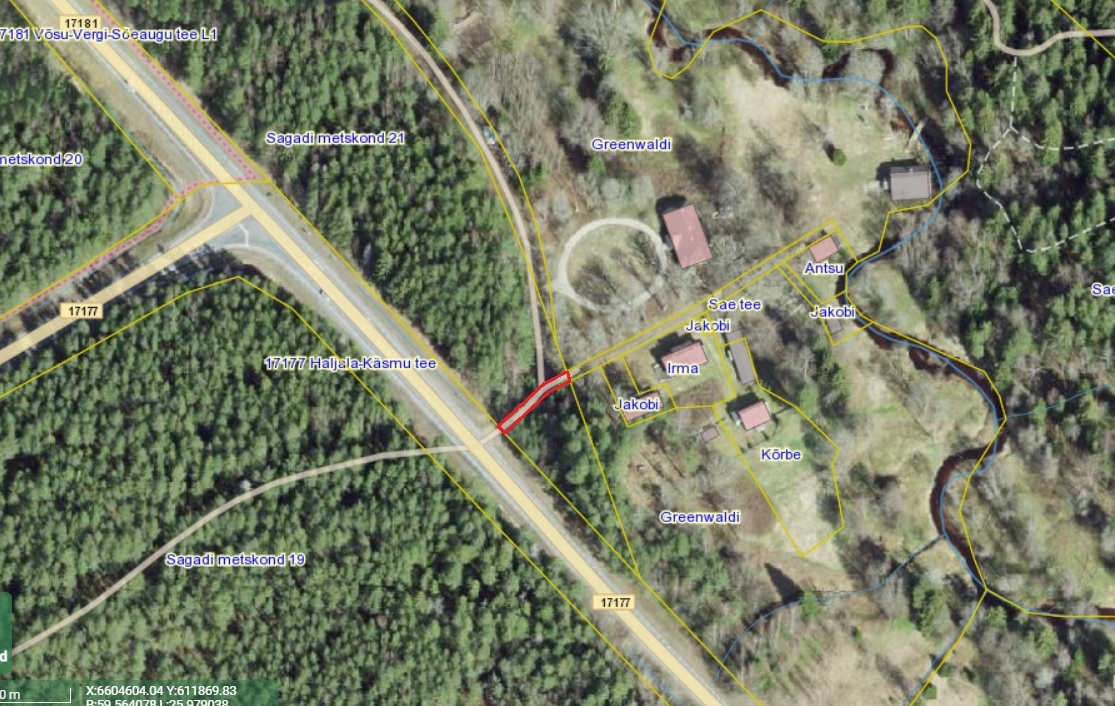 (edaspidi nimetatud Sagadi metskond 21 kinnisasi) kantud kinnistu, mis registriosa esimese jao andmete kohaselt koosneb: -katastriüksus katastritunnusega 88703:001:1390, asukohaga Lääne-Viru maakond, Haljala vald, Koljaku küla, Sagadi metskond 21. Katastriüksus on moodustatud plaani ja kaardimaterjali alusel, majanduslik otstarve maatulundusmaa, pindala 17934,0 m², (edaspidi nimetatud kinnistu)
