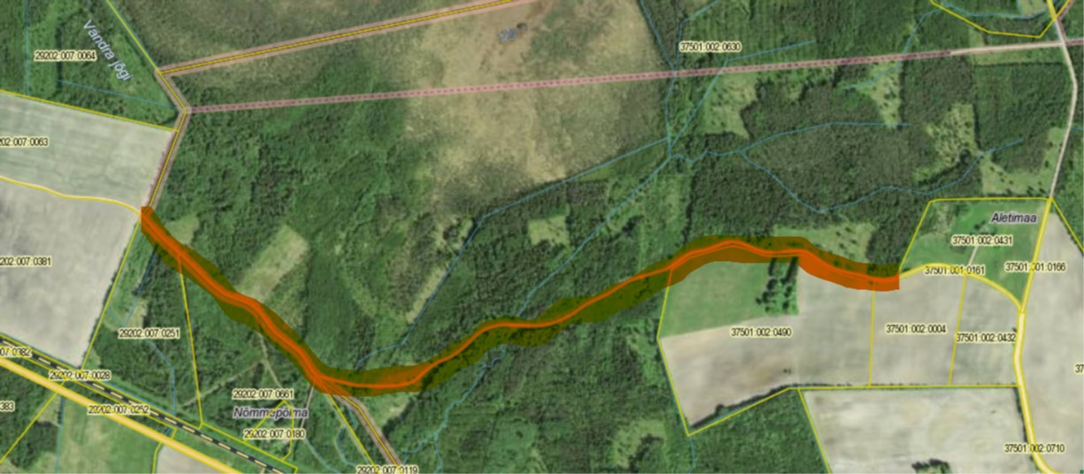 1.Asukoha skeem – Karu_Lelle_tee_(Tyri_vald_RMK)_kaart - treeninglaagri kasutamiseks soovitud teelõik tähistatud punasega.