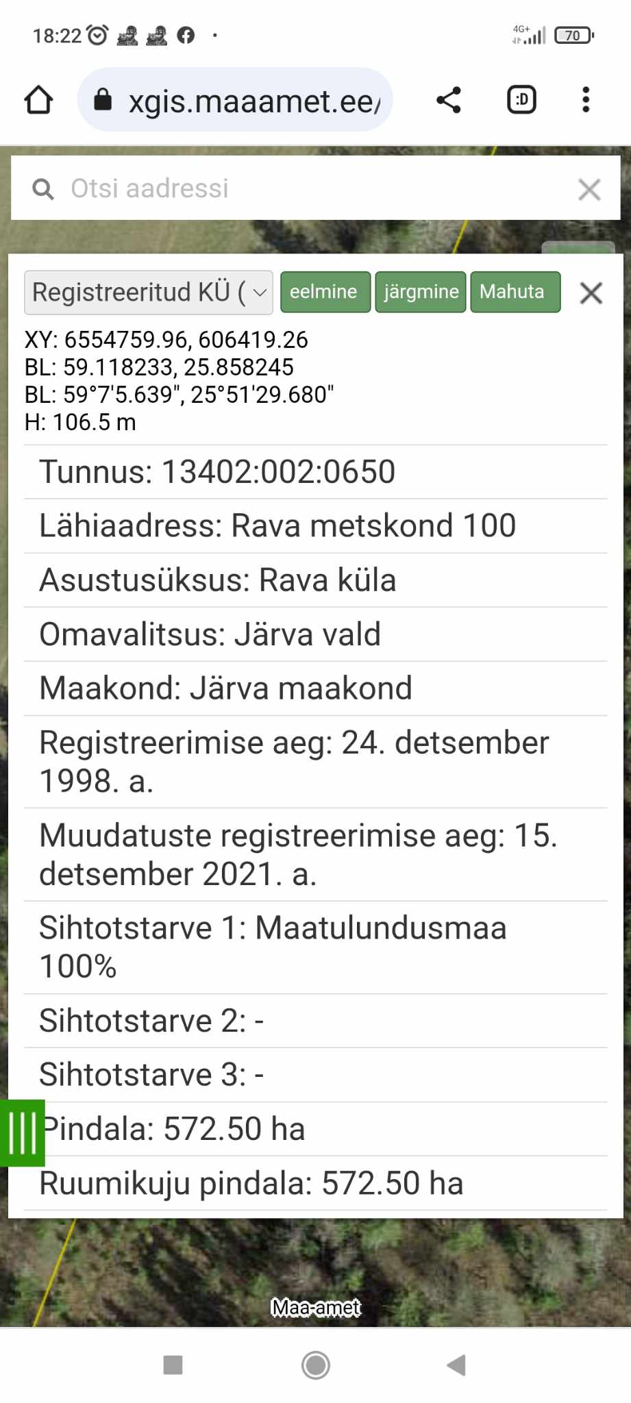 (katastritunnus 13402:002:0650, koordinaadid X6554759.96 Y606419.26) asukohaga Järva