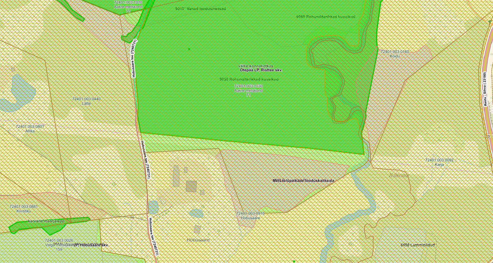 - Aakre metskond 71 (tunnus 72401:003:1030, KV12571, kvartal OP173 ) .