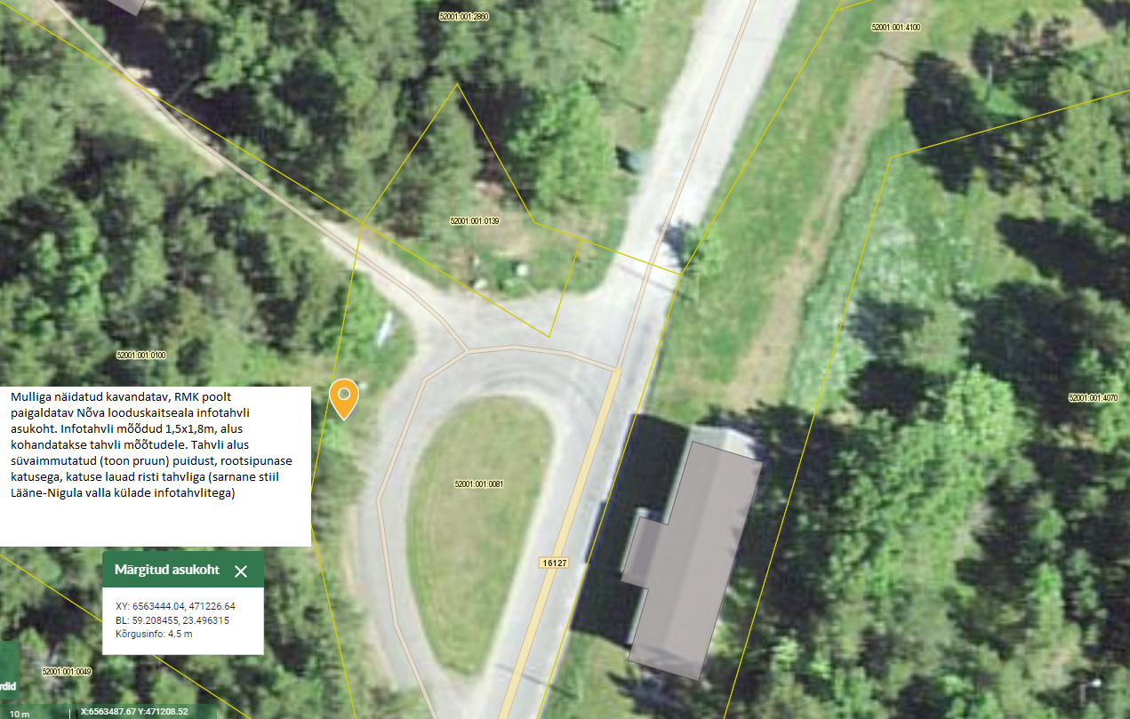 Nõva looduskaitseala kaarti ja käitumisjuhiseid kaitsealal jms) paigaldamiseks Transpordimaale,