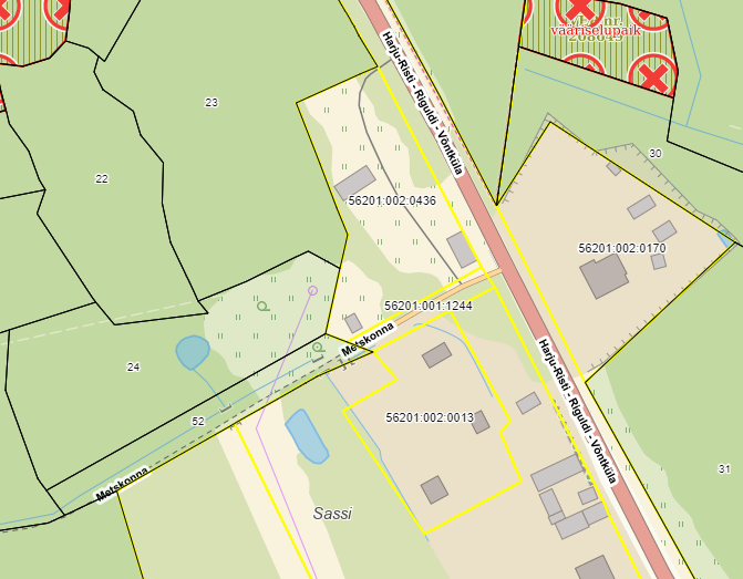 kuuluvat Metskonna (5620146) teed. Metsamaterjali veoks kasutatavad teed on näha Lisa-s 1
