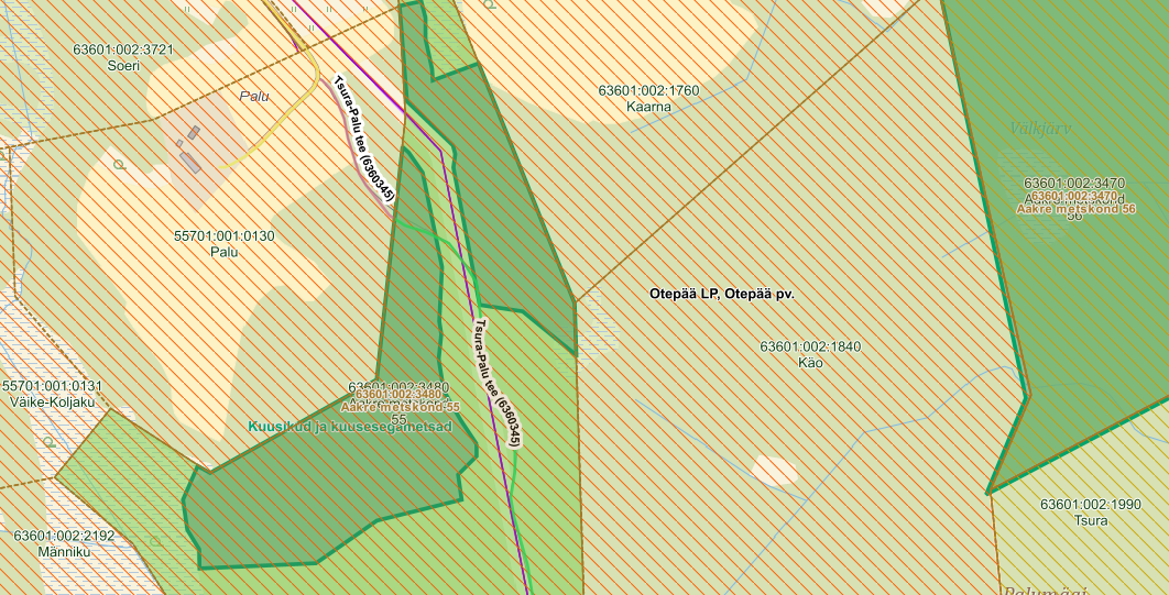 -Aakre metskond 55 katastriüksuse projekteeritud ala asub Otepää Looduspargi Otepää