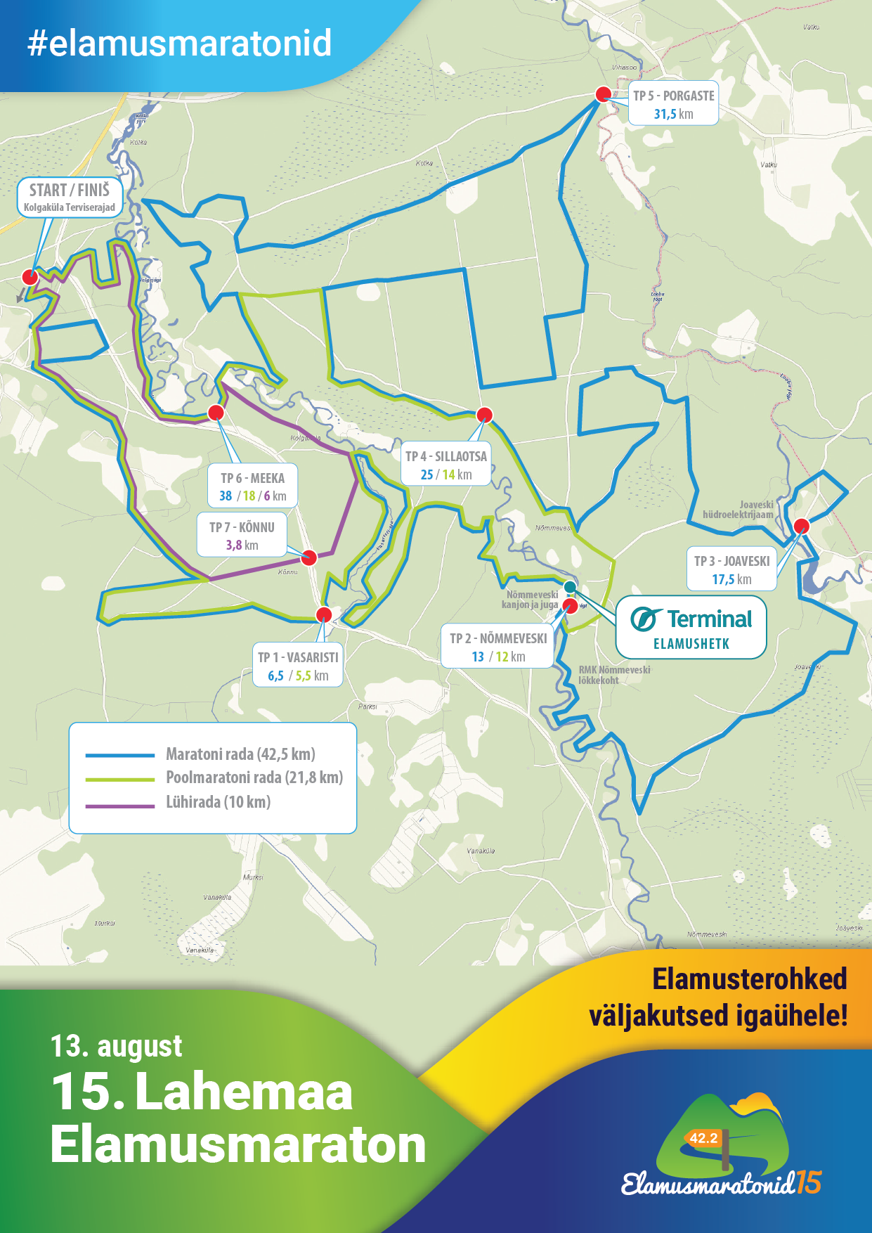 Üritus toimub vastavalt lisatud rajakaardile ning rajad kulgevad kõik olemasolevatel teedel, radadel, matkaradadel ning muudeks liikumiseks sobilikel radadel. Liikumiseks ei kasutata pehmet metsaalust vms, kus ei ole olemasolevaid radu.