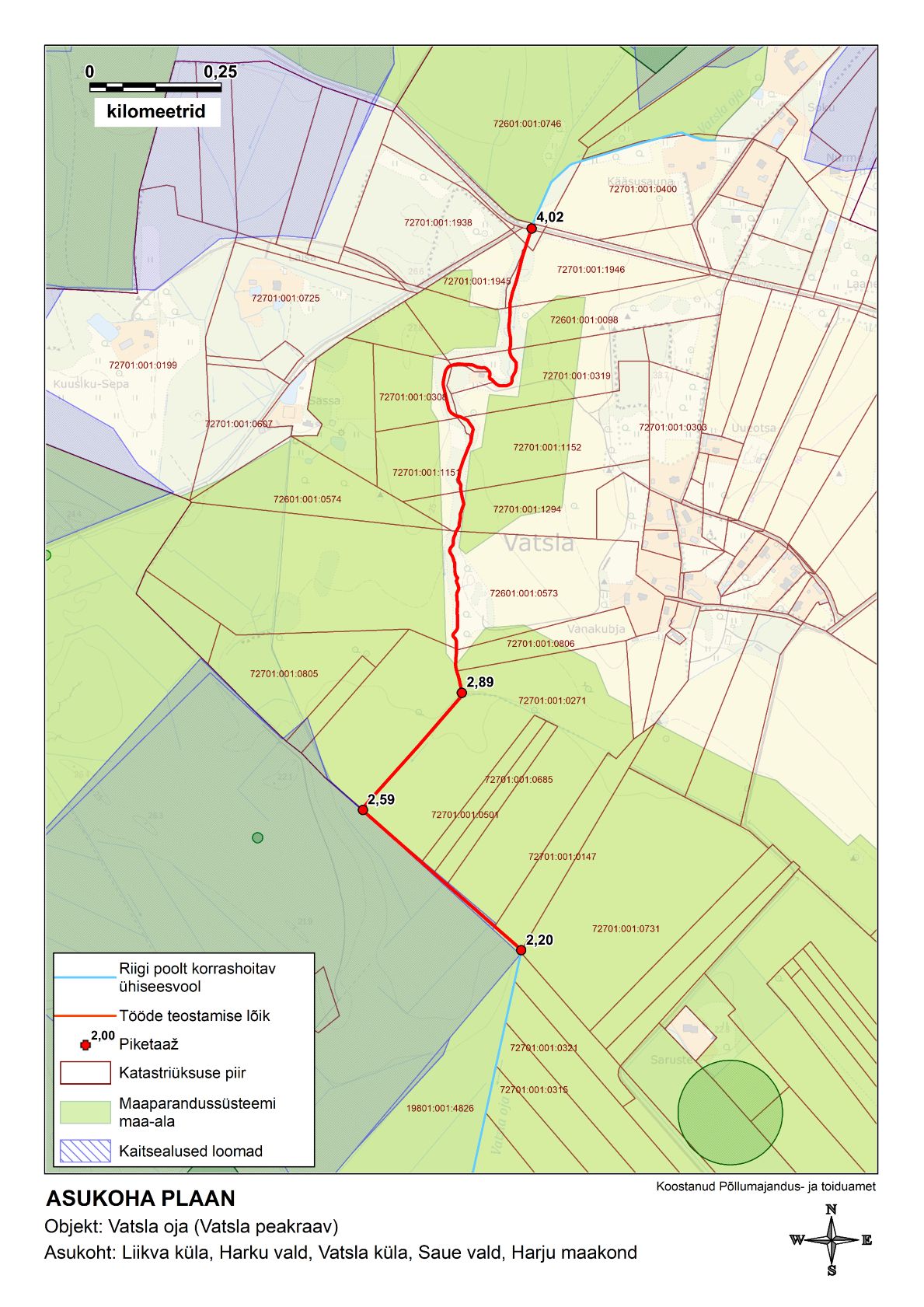 Teavitame Teid, et 2023. aastal on Põllumajandus- ja Toiduametil (edaspidi PTA) plaanis teha maaparandushoiutöid Harju maakonnas Saue vallas Vatsla külas ja Harku vallas Liikva külas riigi poolt korrashoitava ühiseesvoolu Vatsla oja pikettide 2,20–4,02 vahelisel lõigul. Eespool nimetatud pikettide vahemikku jääb ka Teile kuuluv kinnistu (kirjale on lisatud maaparandushoiutööde teostamise lõigu asukohaplaan Harju_Vatsla_oja.jpg).