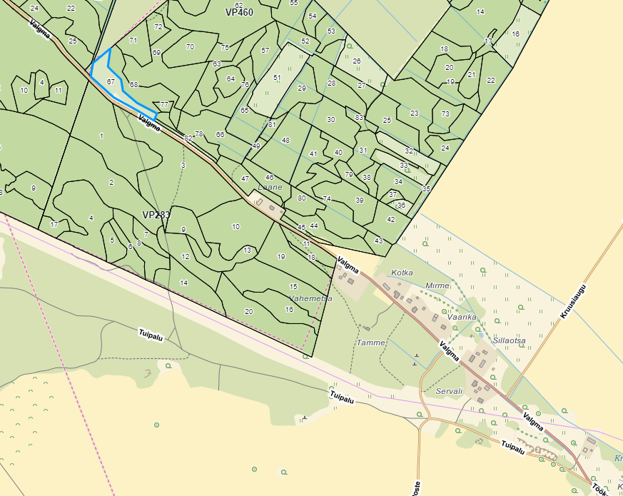 • Altkülas, Vihterpalu metskond 156 kinnistul (katastriüksus 56201:001:1057) asuval metsaeraldisel nr 67 kuna raieala kattub Valgma tee kaitsevööndiga.
