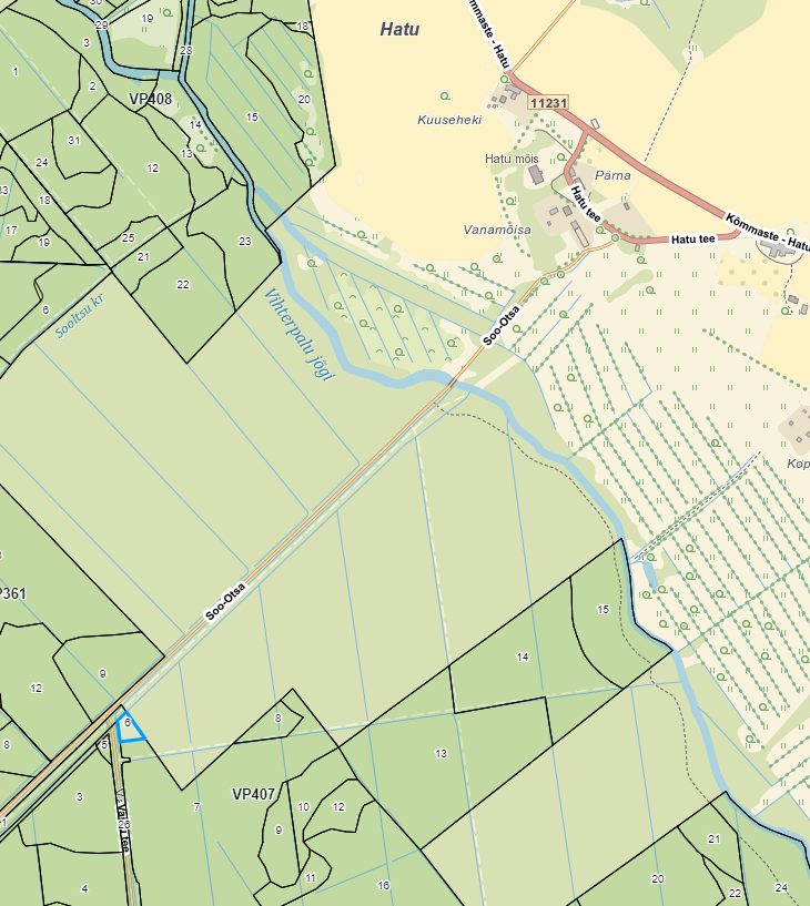 • Hatu külas, Vihterpalu metskond 38 kinnistul (katastriüksus 56201:002:0474) asuval metsaeraldisel nr 6 kuna raieala kattub Soo-Otsa tee kaitsevööndiga.