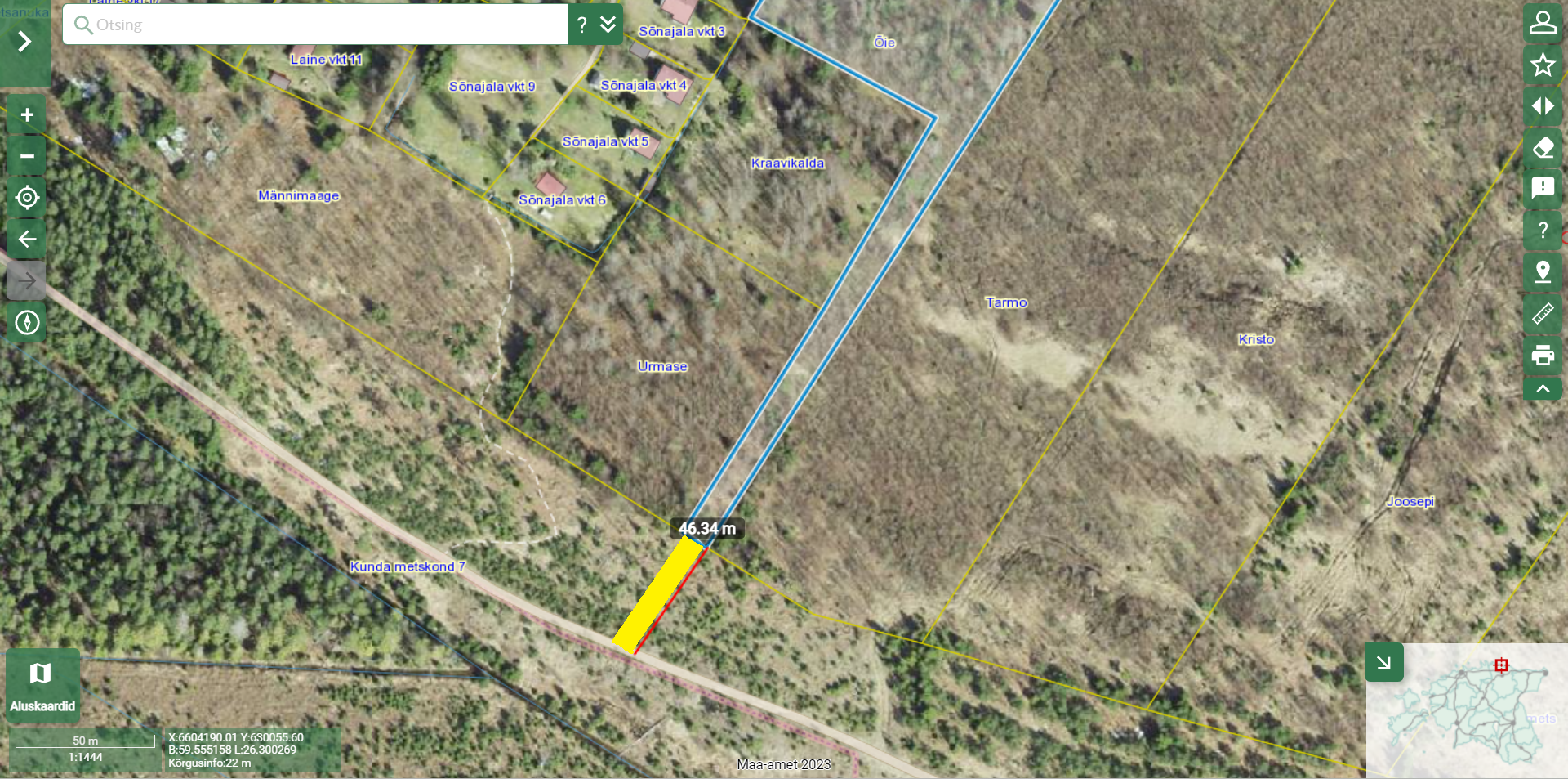 Olete pöördunud Riigimetsa Majandamise Keskuse (edaspidi RMK) poole seoses juurdepääsuõiguse saamisega Lääne-Viru maakonnas Haljala vallas Eisma külas asuvale Õie kinnisasjale (kinnistu registriosa nr 22315050, katastritunnus 19101:001:0746). Juurdepääsu soovite üle riigile kuuluva Lääne-Viru maakonnas Haljala vallas Andi külas asuva Kunda metskond 7 kinnisasja (kinnistu registriosa nr 5370631, katastritunnus 88703:002:1460), mille valitseja on Keskkonnaministeerium ja volitatud asutus RMK.