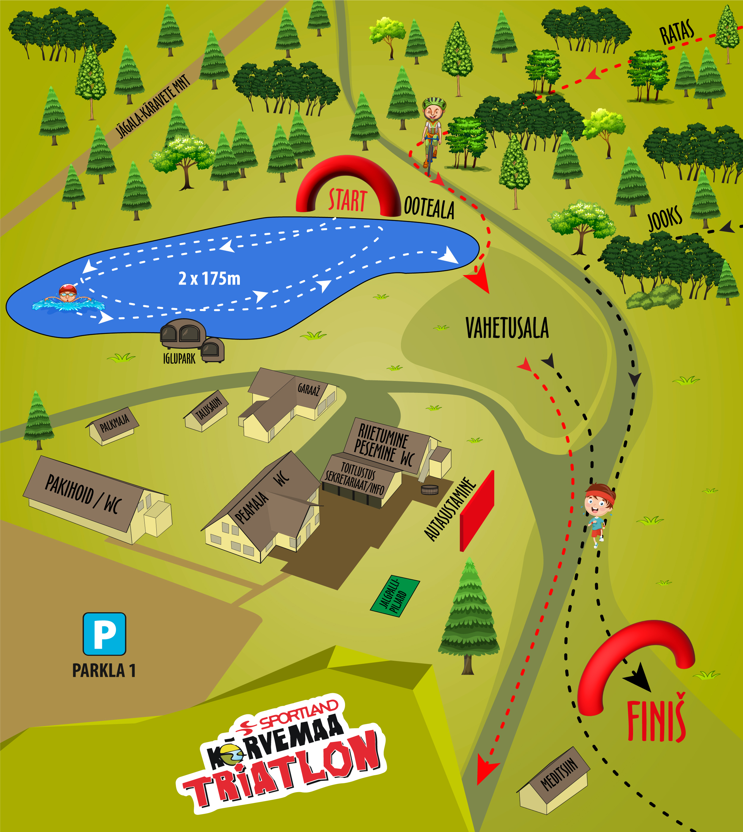 Triatloni võistlus - ujumine Sportland Kõrvemaa Matka- ja Suusakeskuse tiigis, rattasõit ja jooks tavapäraselt igapäevaselt avatud ja hooldatud Kõrvemaa matkaradadel. Umbes 400 auto parkimine Sportland Kõrvemaa Matka- ja Suusakeskuses,Vana Piibe maanteel, Änni teel.