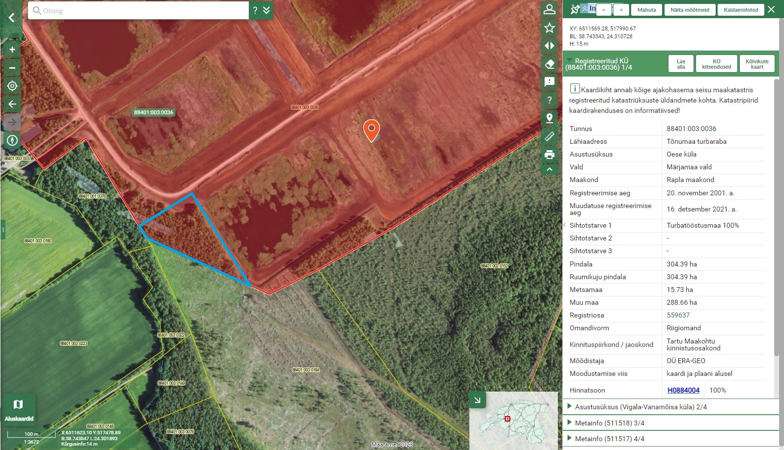 tegelikult on ERA Valduse AS Tõnumaa turbaraba katastriüksuse metsa riigilt välja ostnud ning
