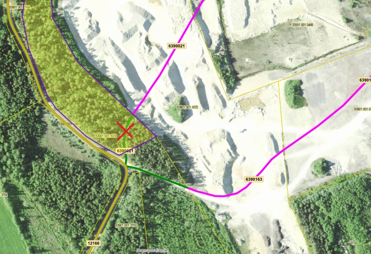 näidatud Partsi-Loja metsatee lõigu hilisema võimaliku likvideerimise kaevandamise eesmärgil.