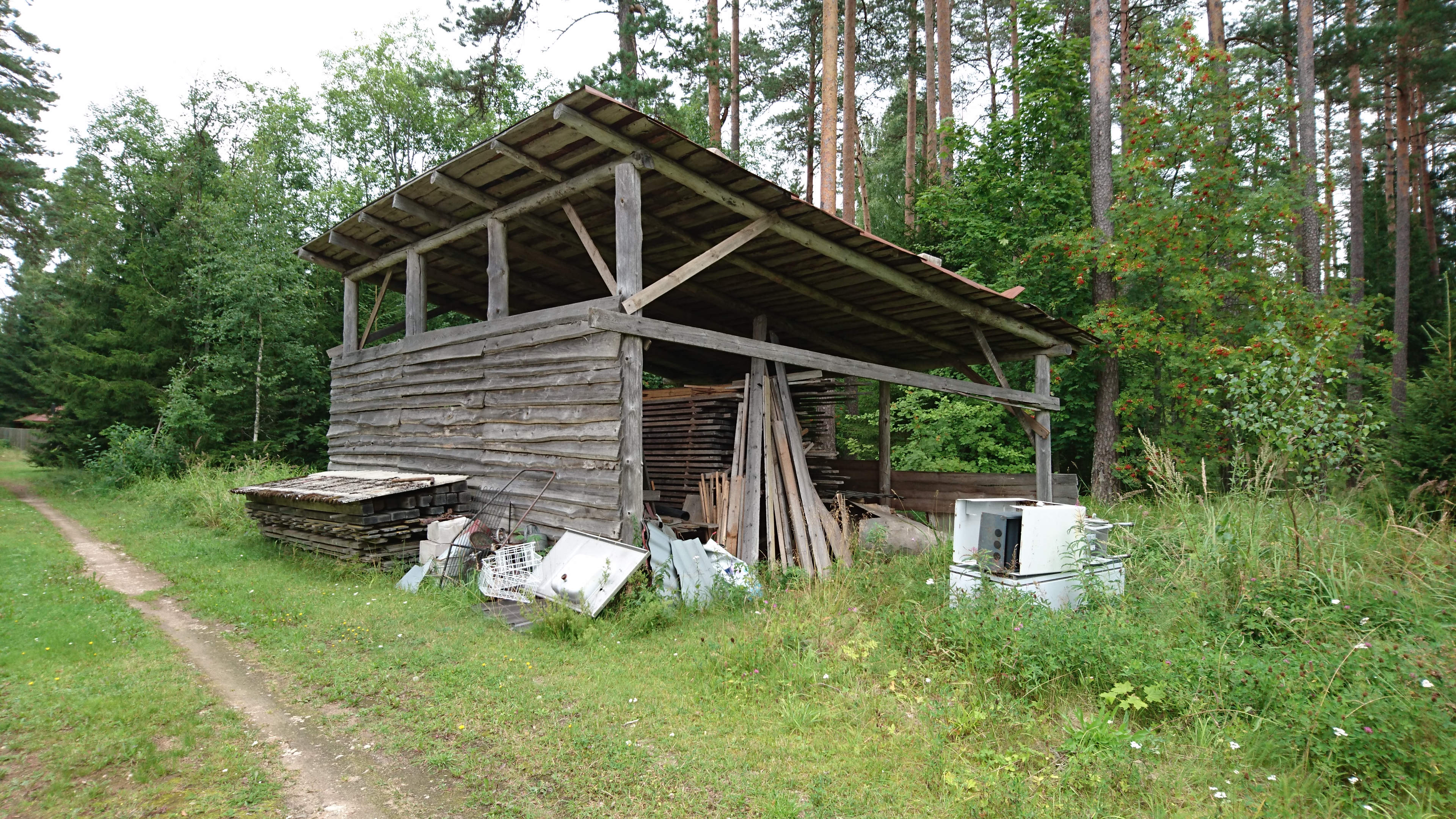 abihooned (kõrval- või tootmishoone) ning on ladustatud mitmesuguseid esemeid ja materjale,