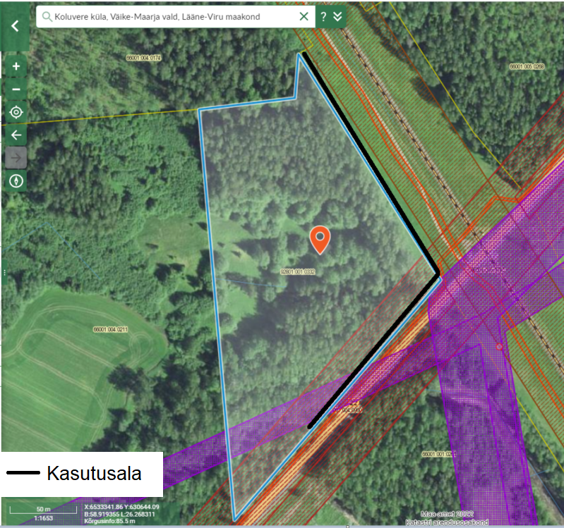 2) maa kasutamisel tuleb arvestada kinnisasjal lasuvate kitsendustega (nähtavad Maa-ameti