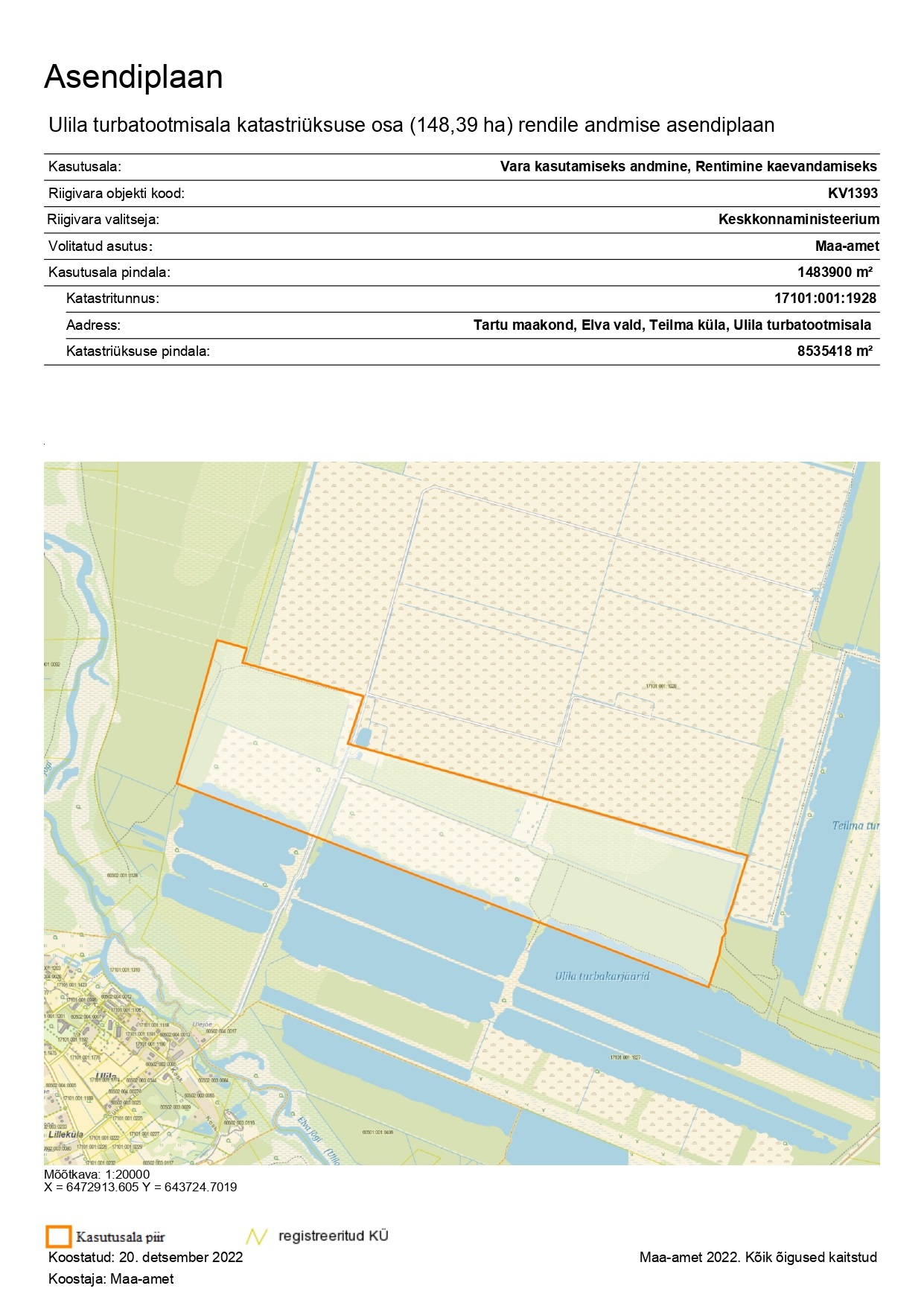 853,54 ha, sihtotstarve turbatööstusmaa 100%, riigi kinnisvararegistri objekti kood KV1393)