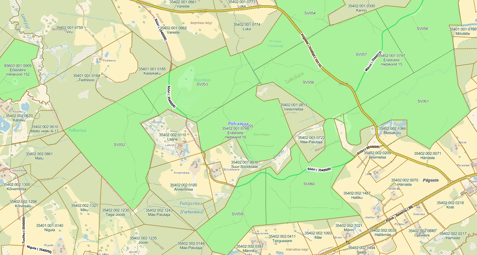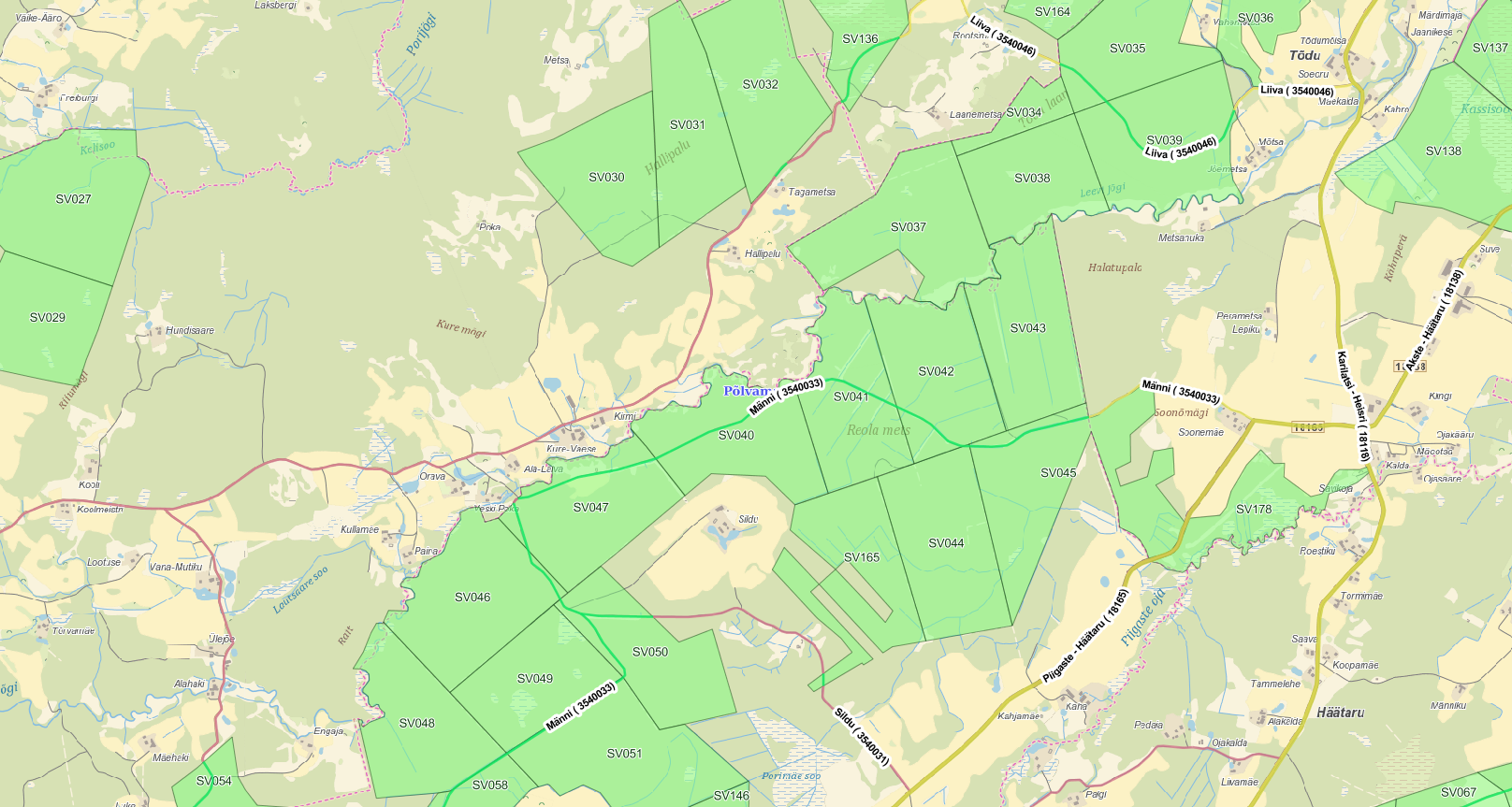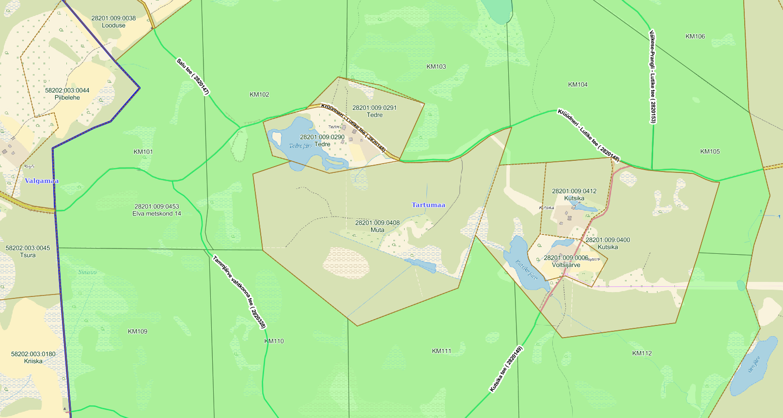 (6360597), Valgamaal Arimäe-Sõõrumäe tee (7240131), Põlvamaal Sõõri tee ja Männi tee